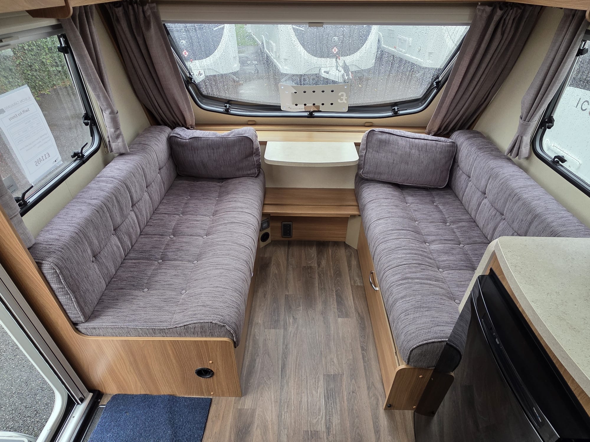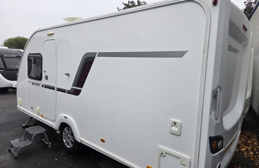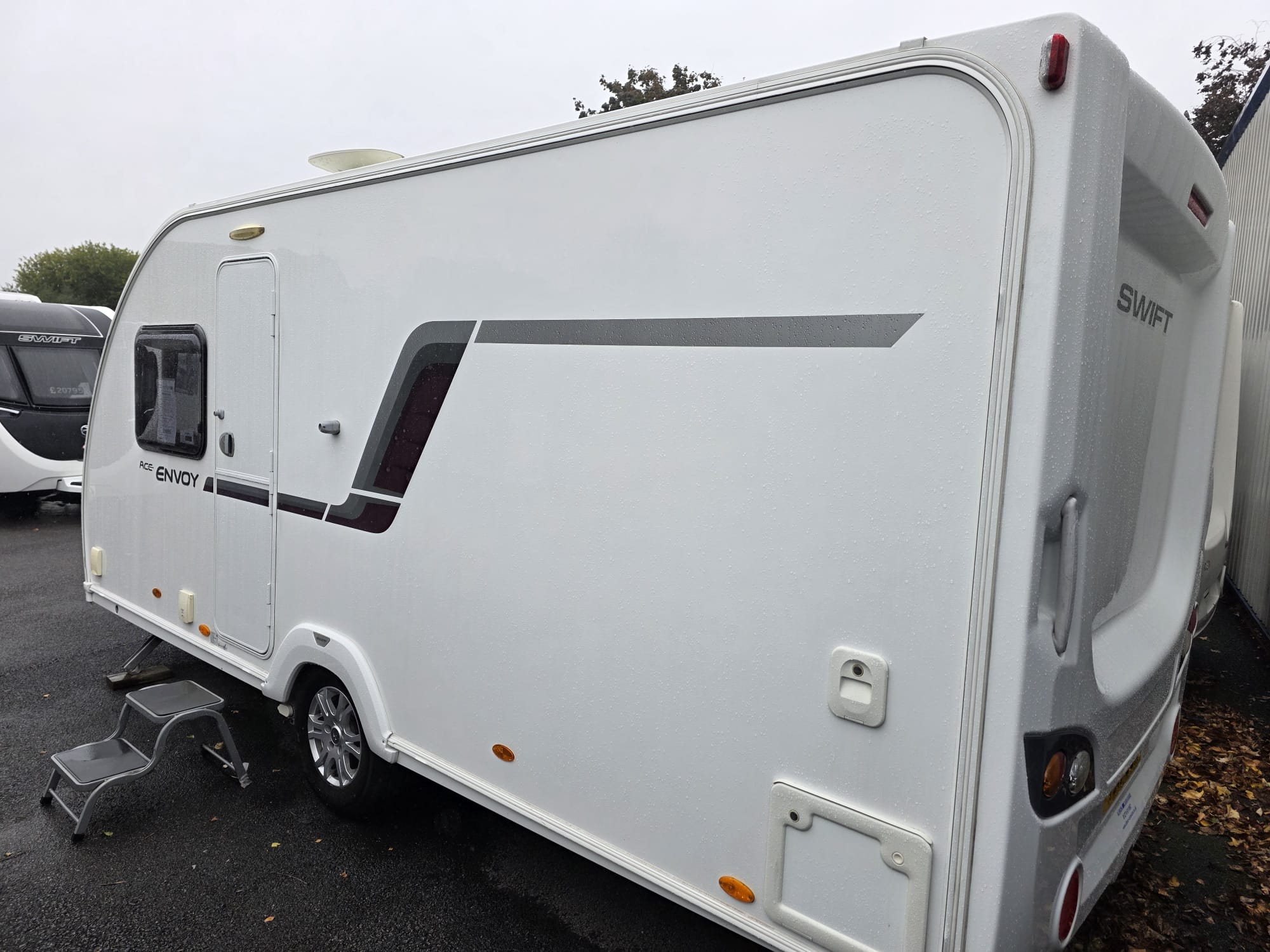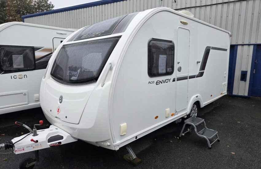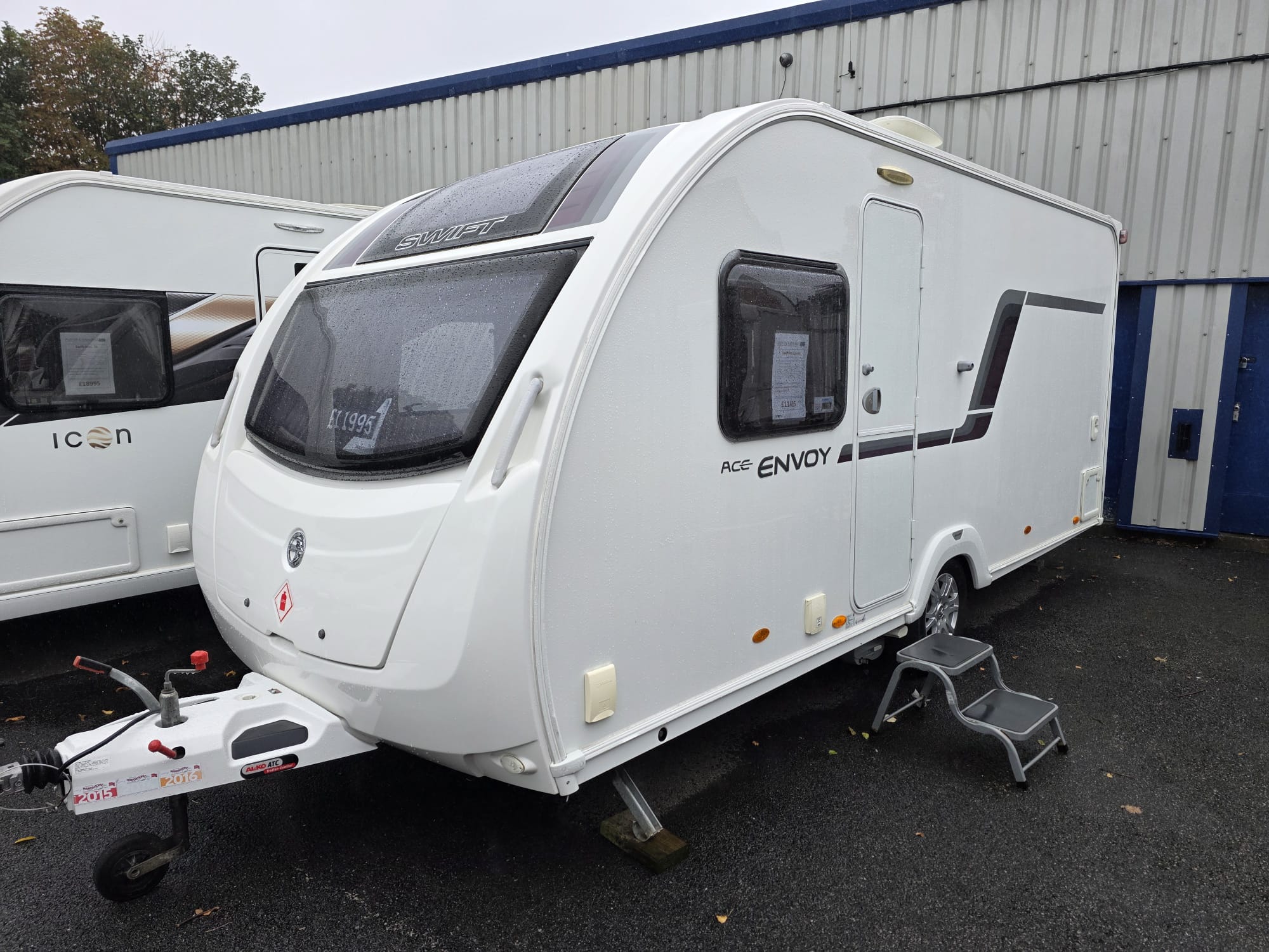 The 2014 Swift Ace Envoy is a fixed bed caravan with a corner washroom. The front seating converts to a double if required. A lightweight caravan with an overall length of only 6.4m. Motor mover included.