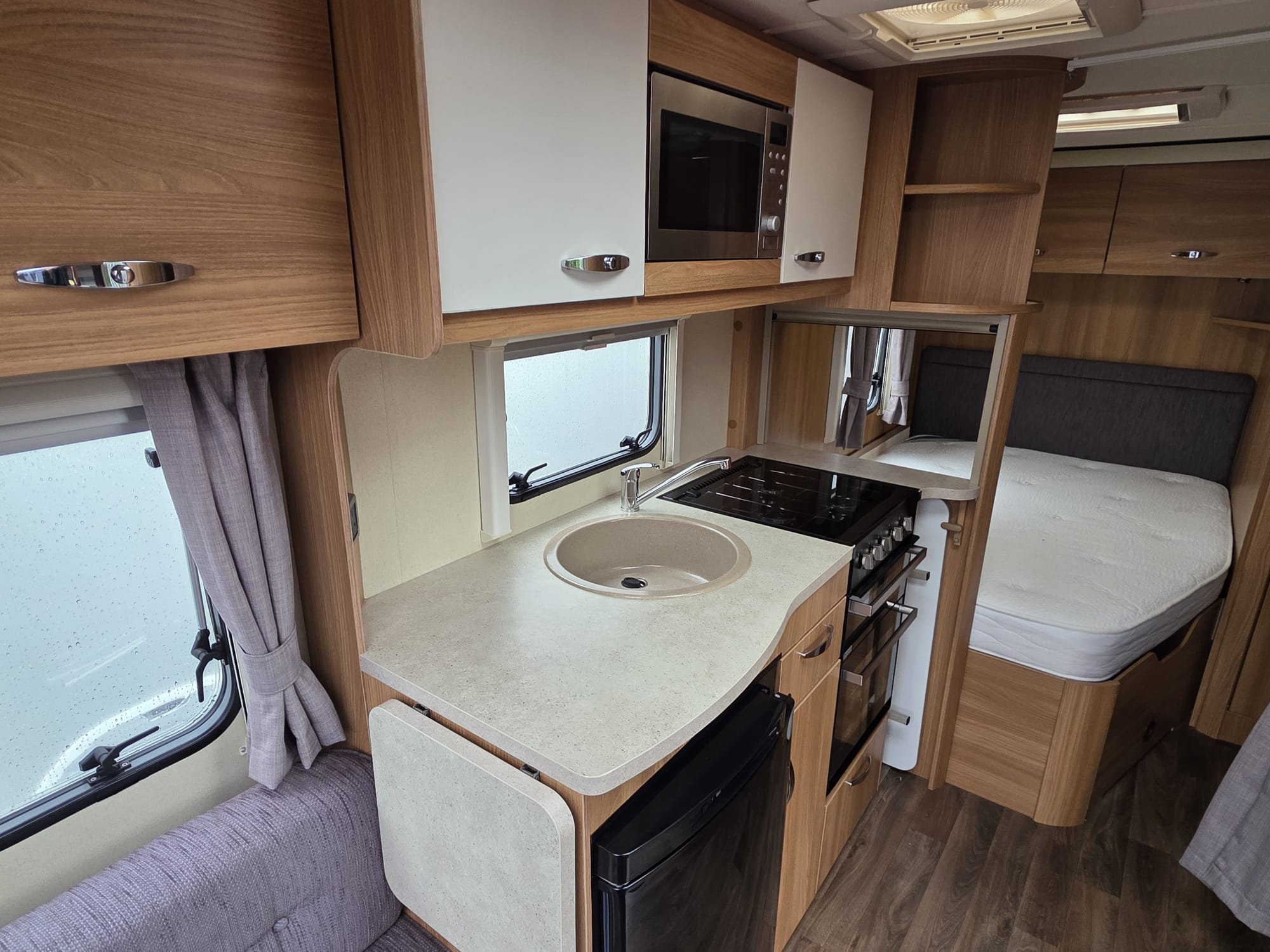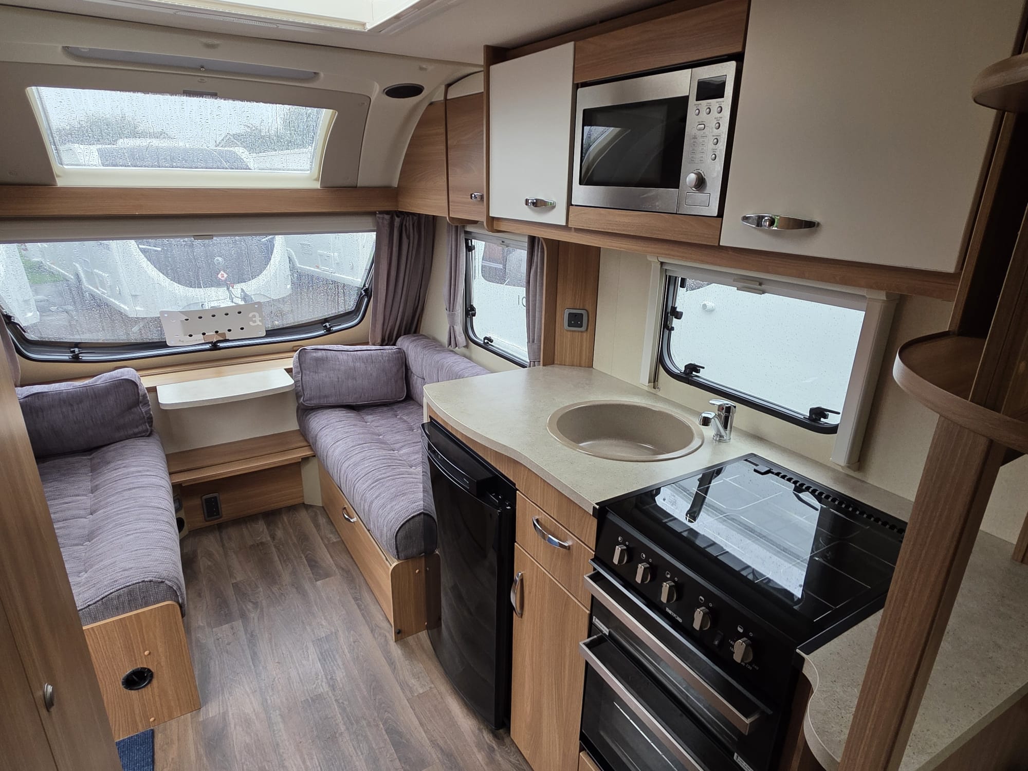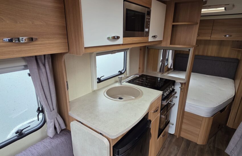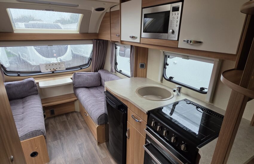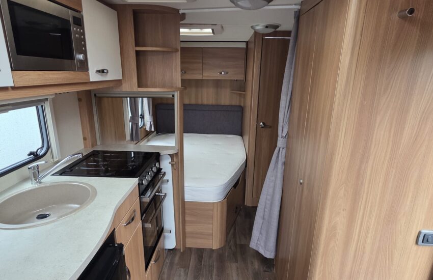 The 2014 Swift Ace Envoy is a fixed bed caravan with a corner washroom. The front seating converts to a double if required. A lightweight caravan with an overall length of only 6.4m. Motor mover included.