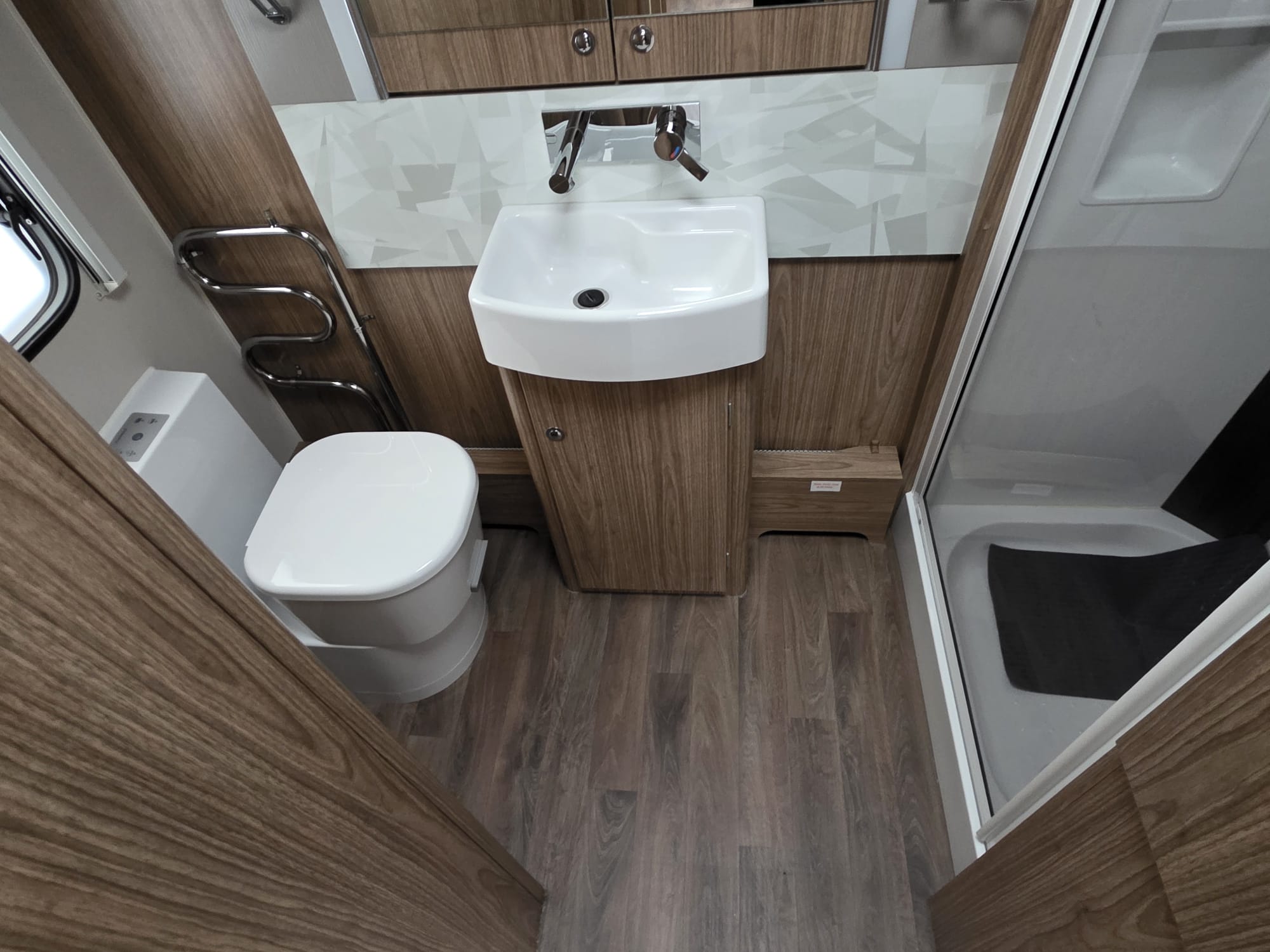 The 2019 Coachman VIP 460 is a luxury two berth caravan with a full rear washroom. Full facilities include ALDE central heating system, ATC traction control and a motor mover.