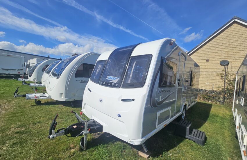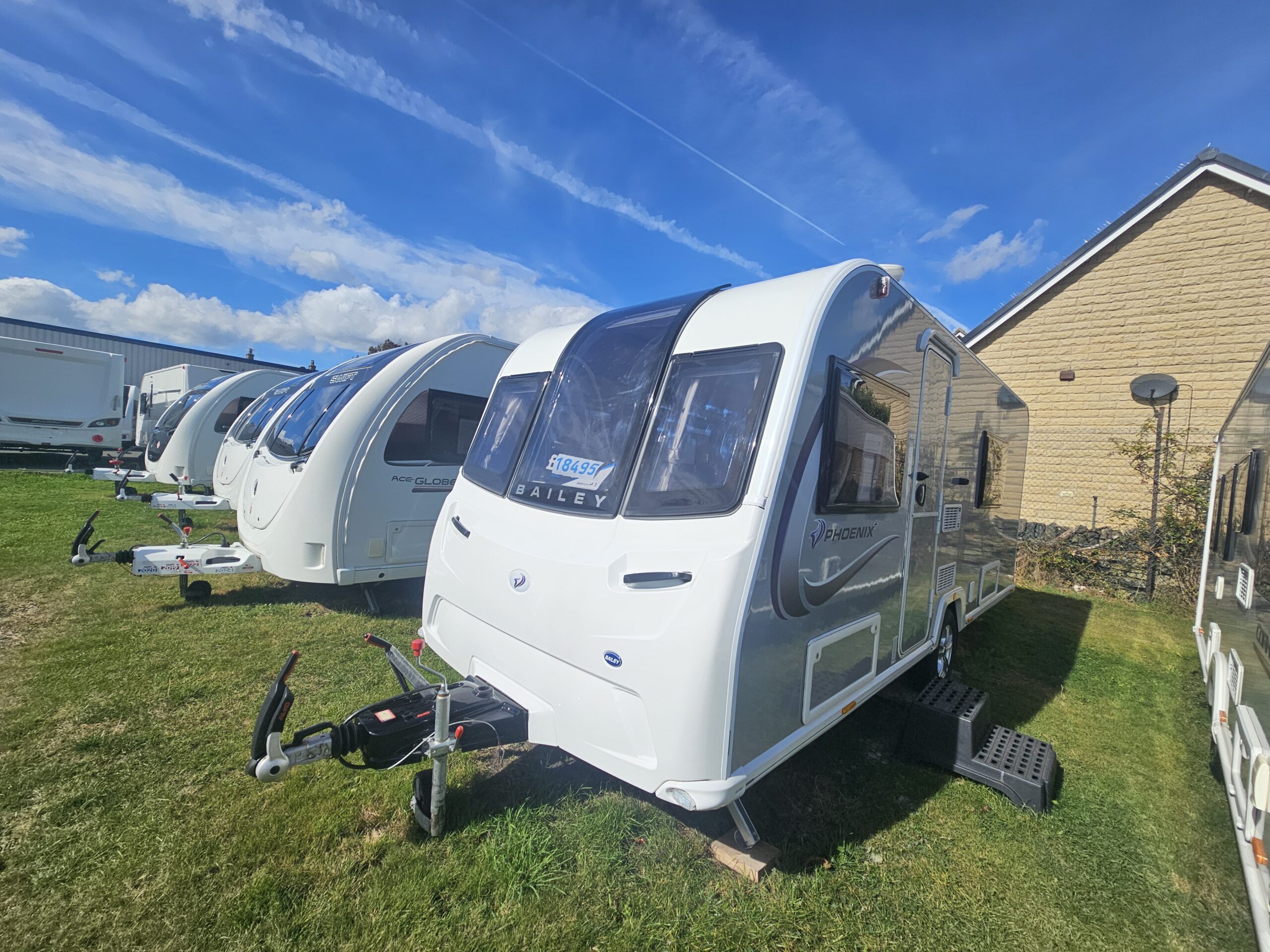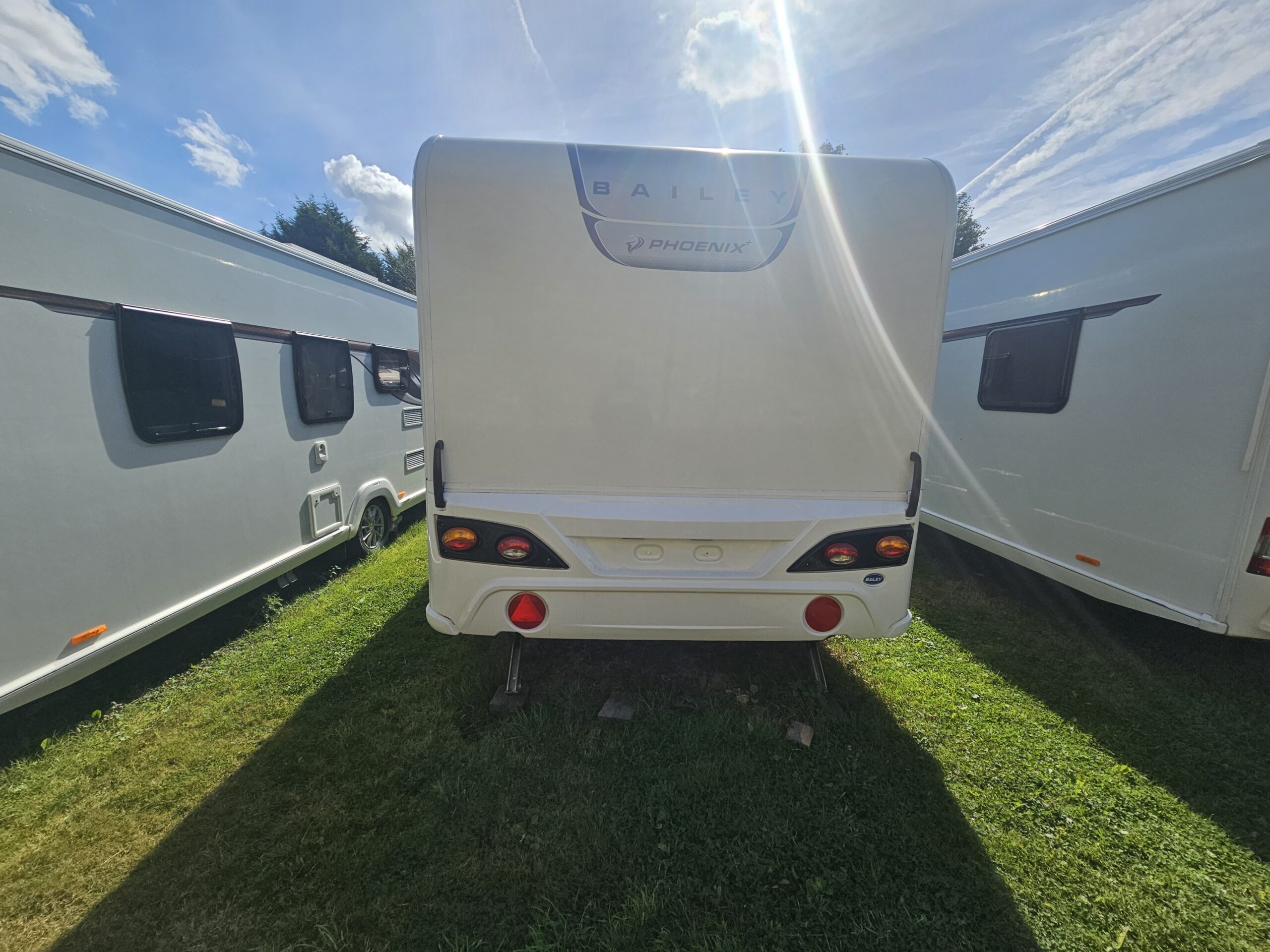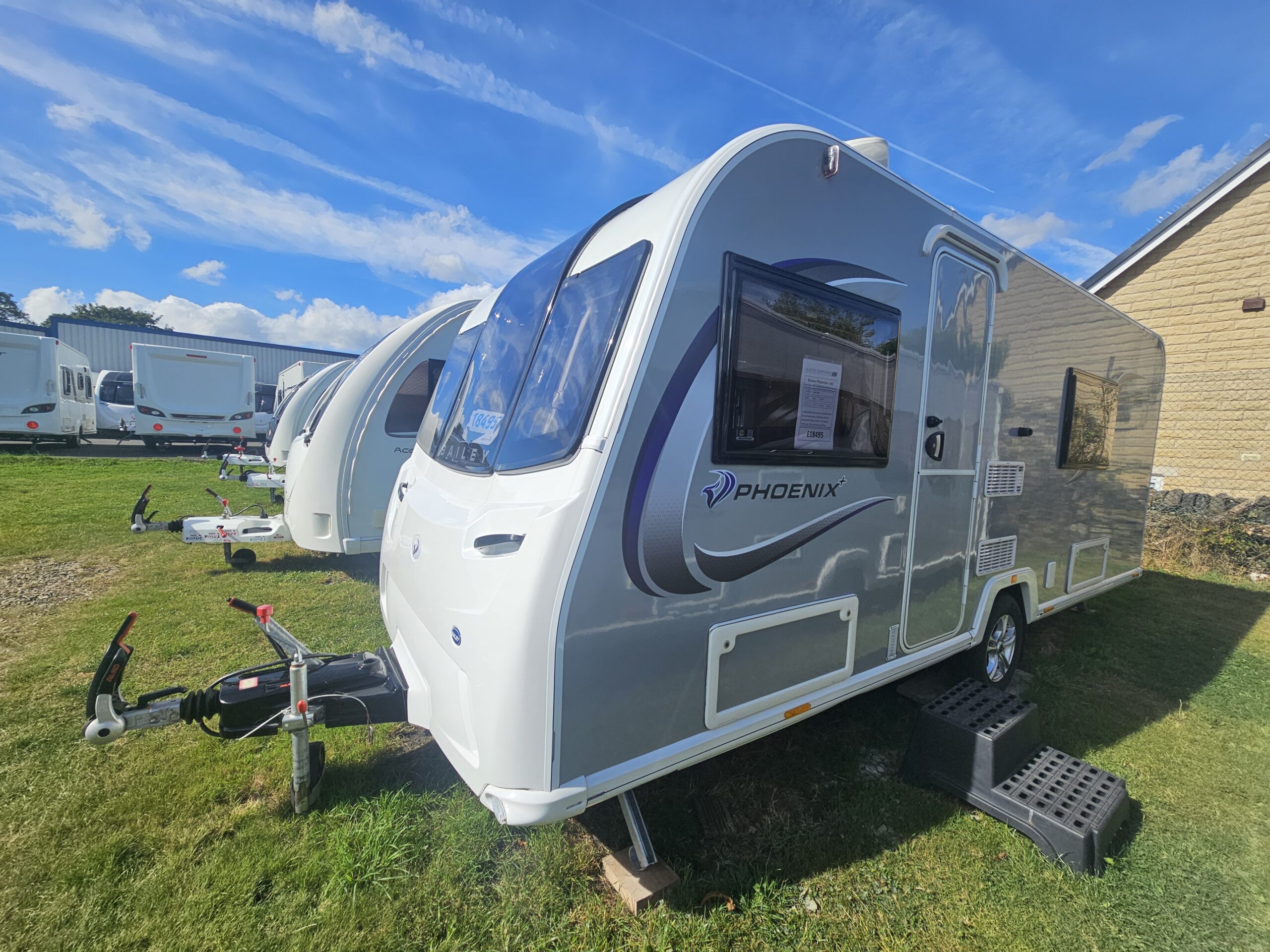 The 2022 Bailey Phoenix+ 440 is a compact, lightweight fixed bed caravan in excellent order throughout. The fixed french bed is on the near-side and there is a full washroom/shower at the rear. The front dinette can be made into a generous double. Light and modern design both inside and out.