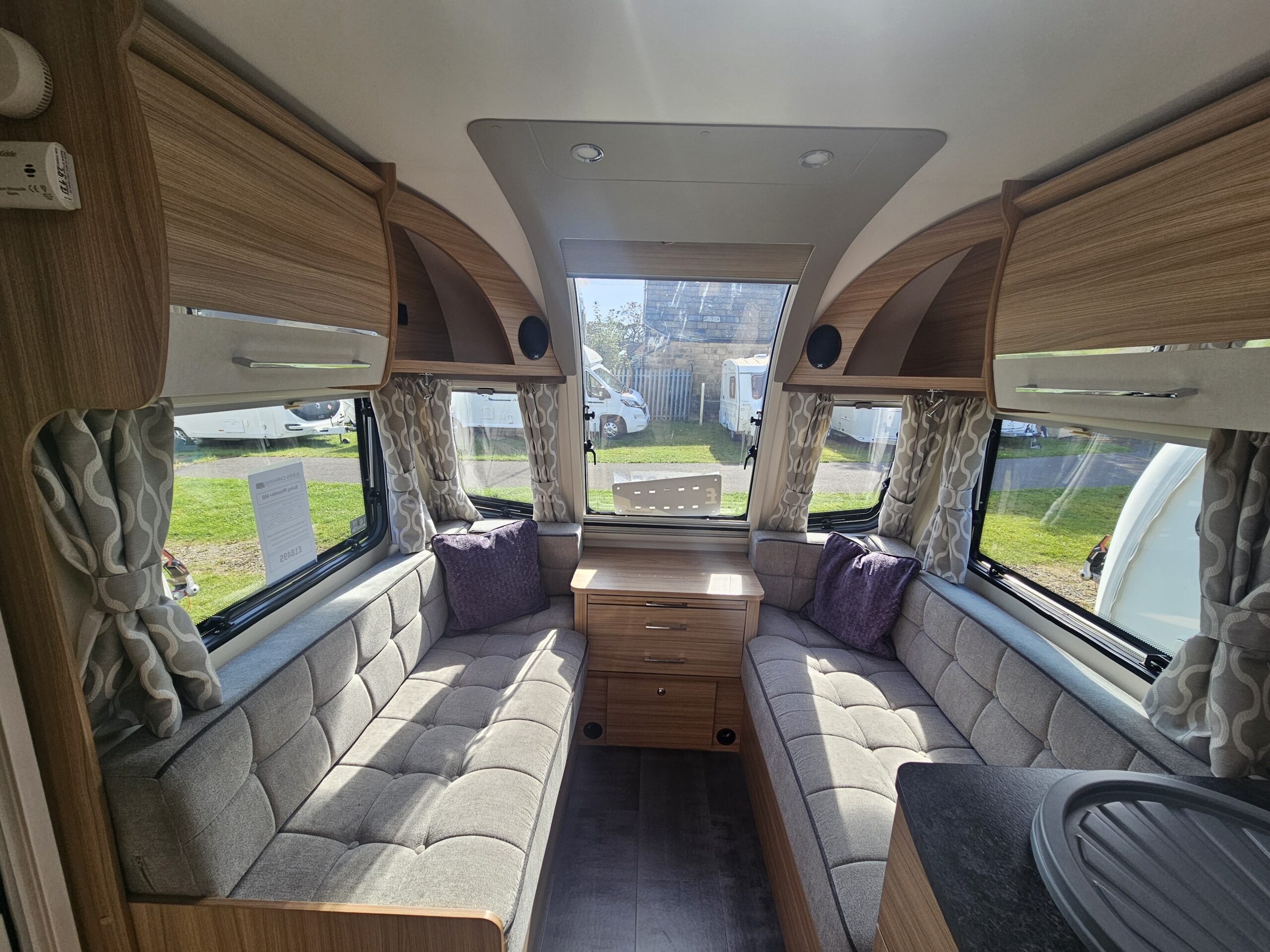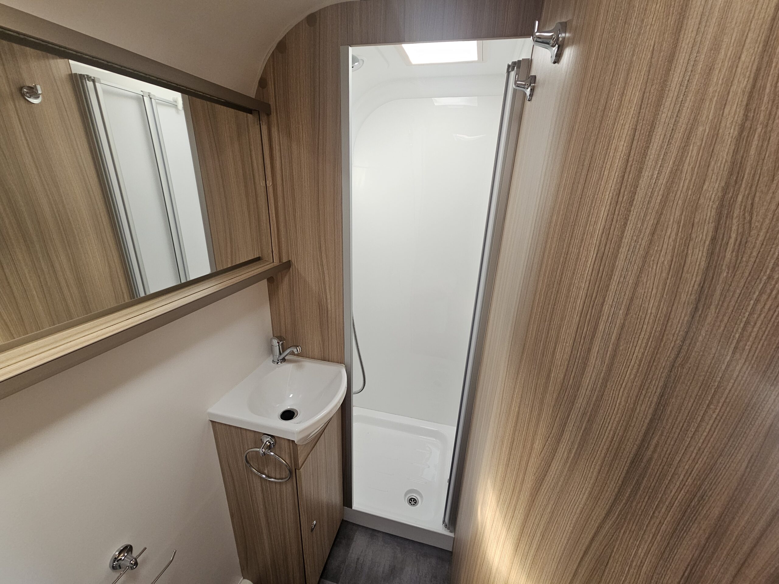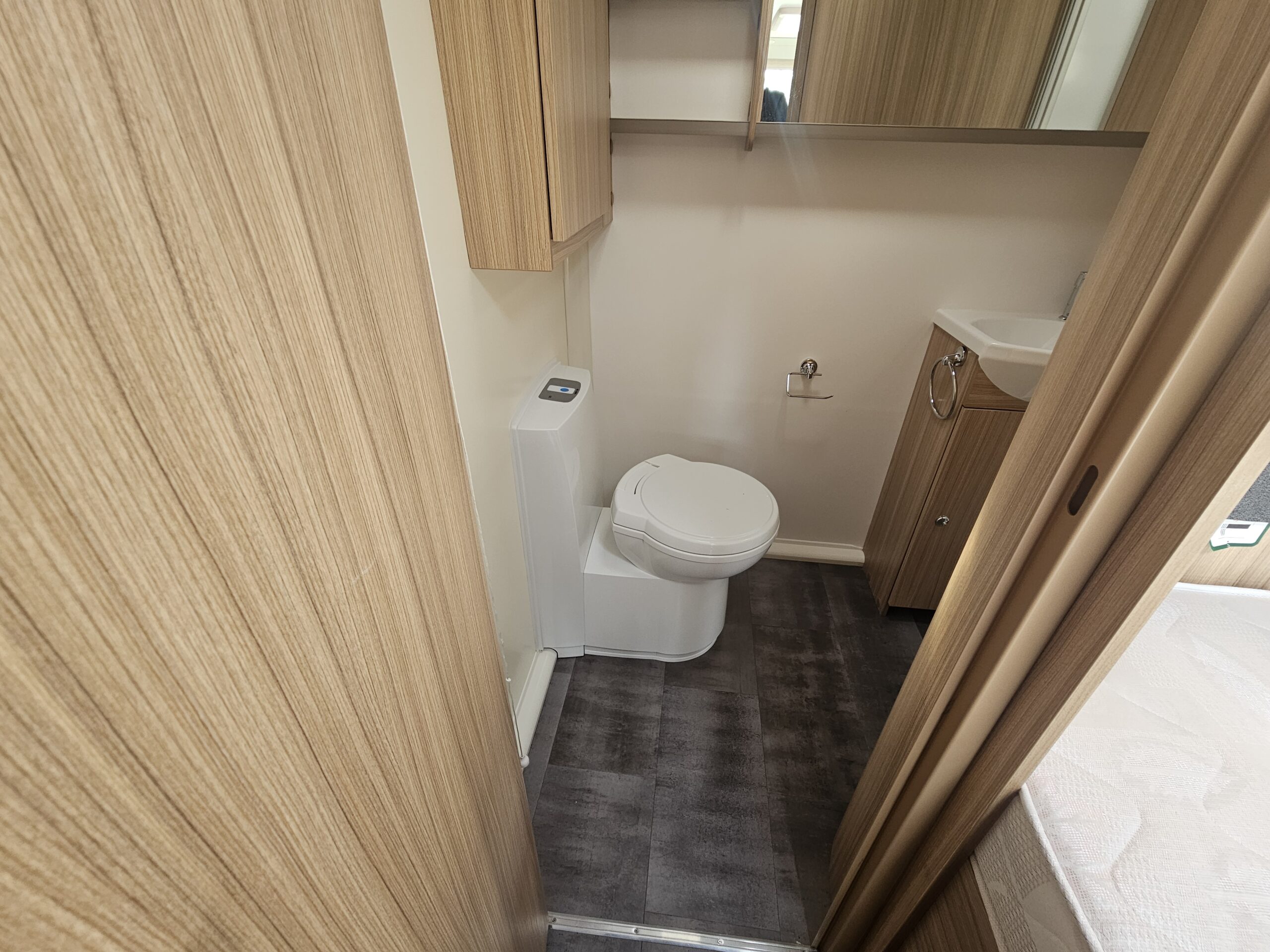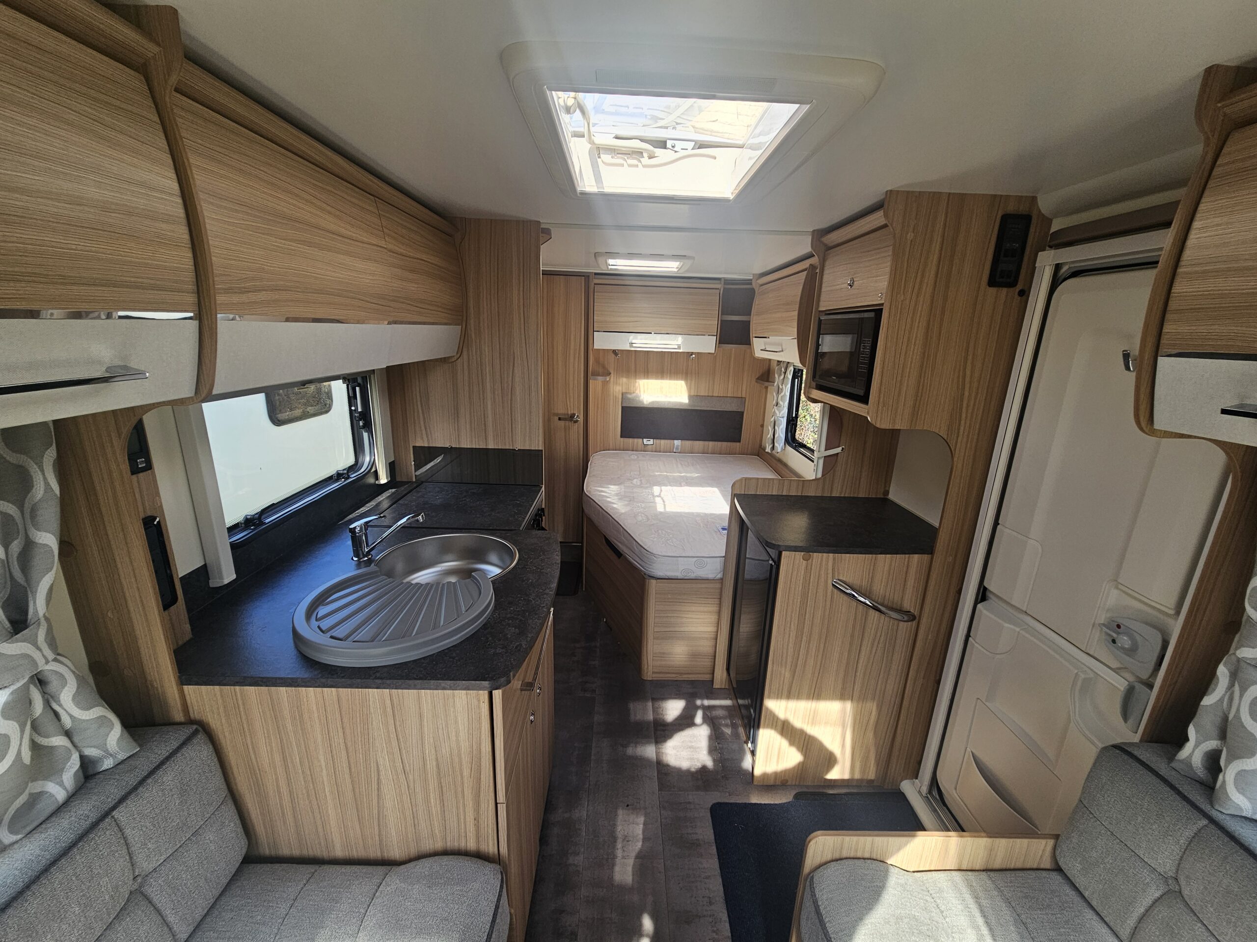 The 2022 Bailey Phoenix+ 440 is a compact, lightweight fixed bed caravan in excellent order throughout. The fixed french bed is on the near-side and there is a full washroom/shower at the rear. The front dinette can be made into a generous double. Light and modern design both inside and out.