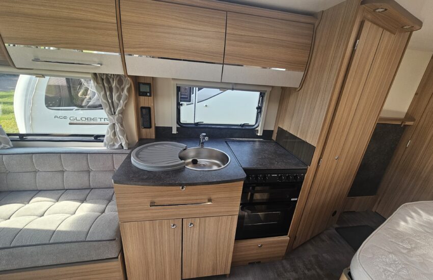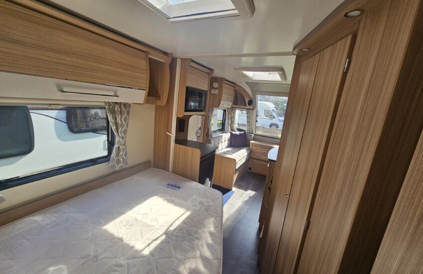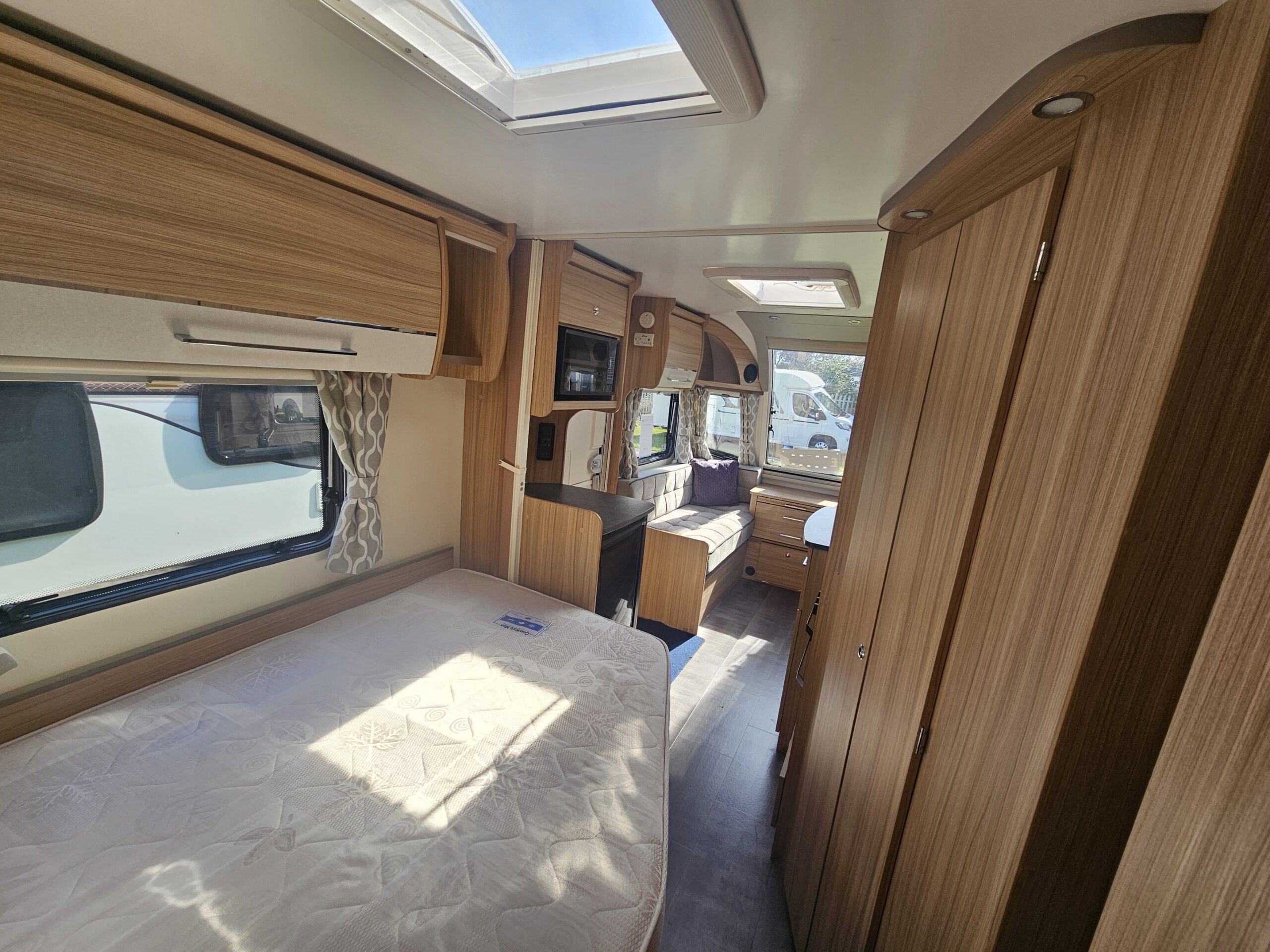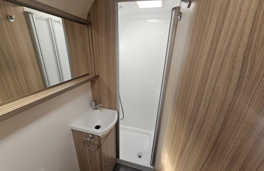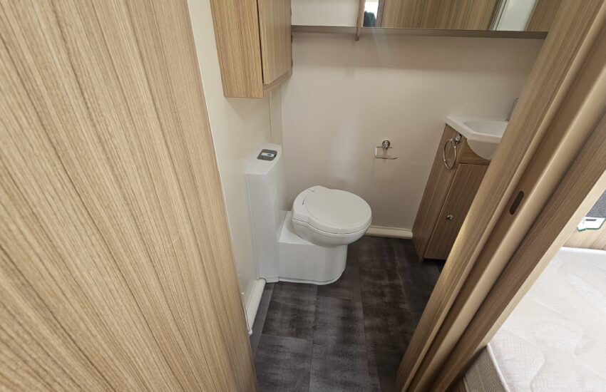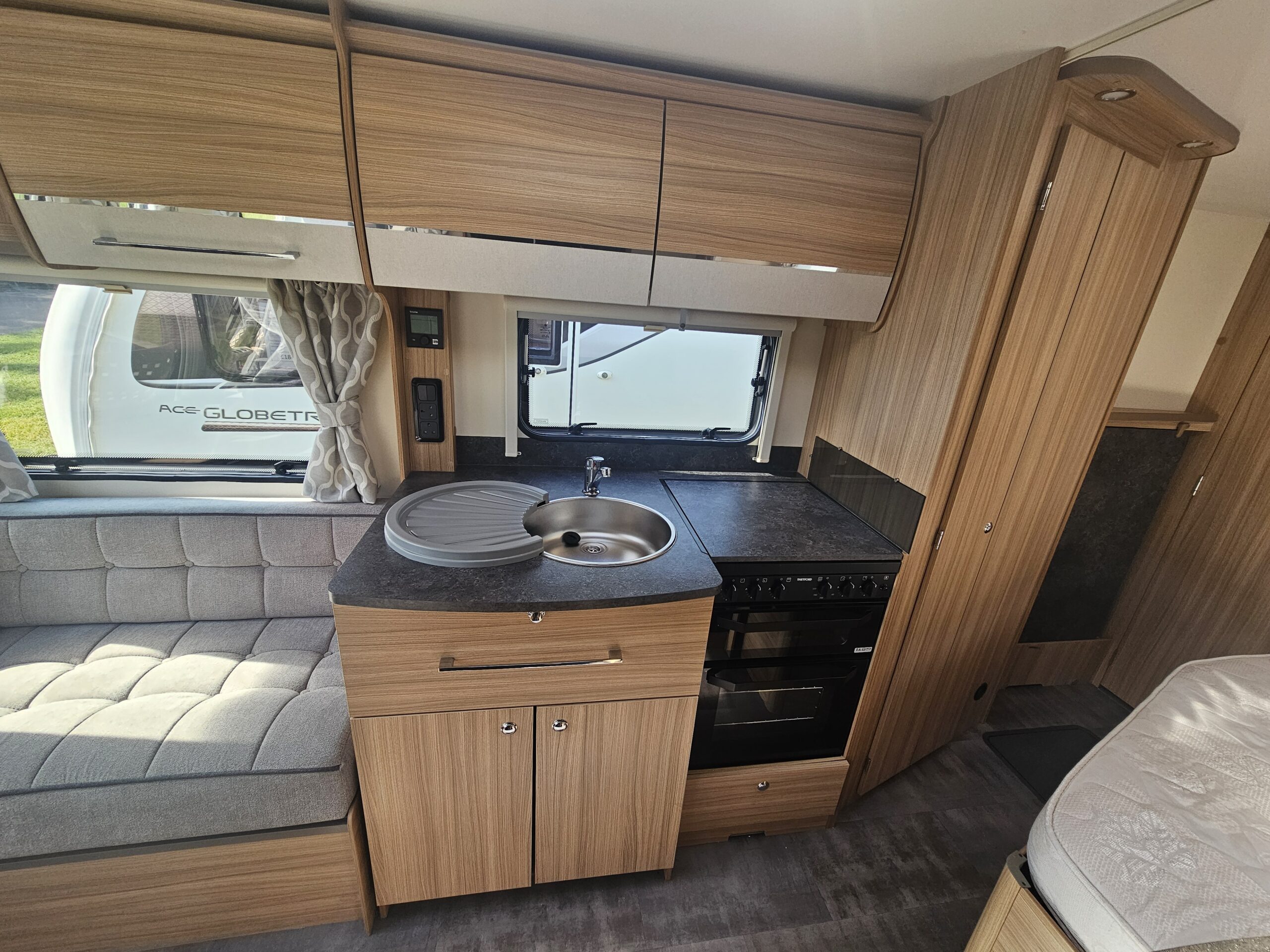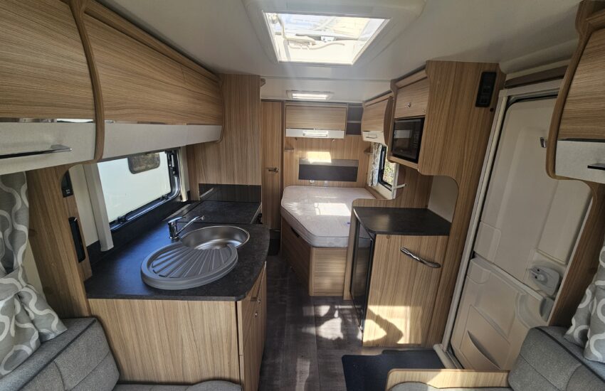 The 2022 Bailey Phoenix+ 440 is a compact, lightweight fixed bed caravan in excellent order throughout. The fixed french bed is on the near-side and there is a full washroom/shower at the rear. The front dinette can be made into a generous double. Light and modern design both inside and out.