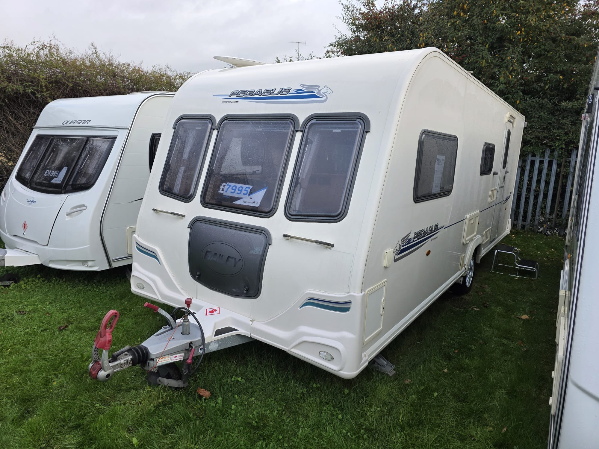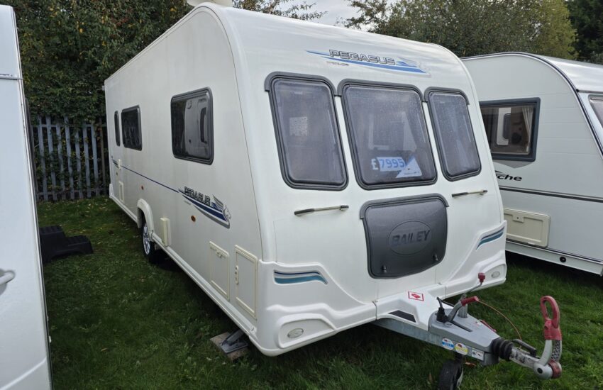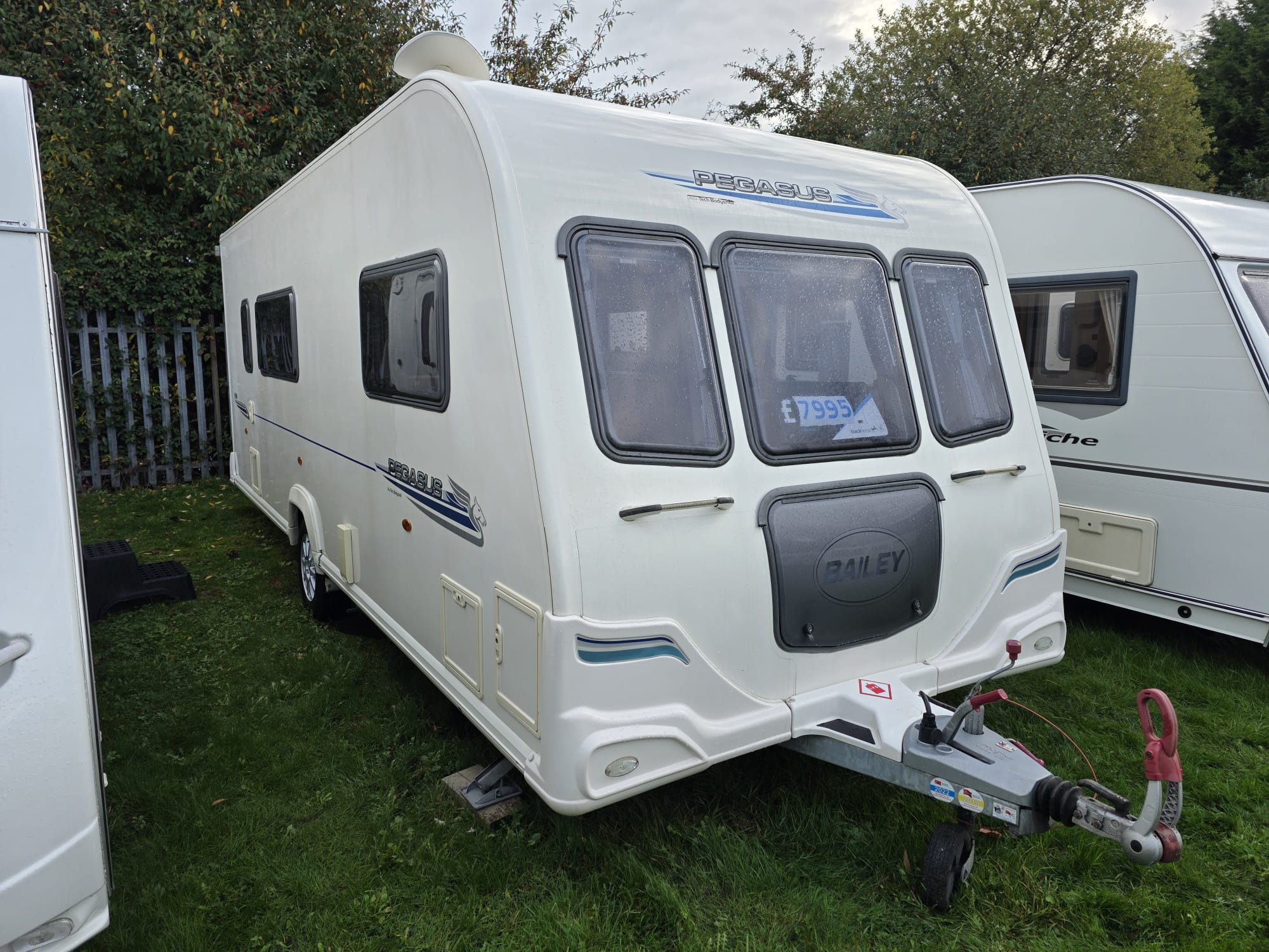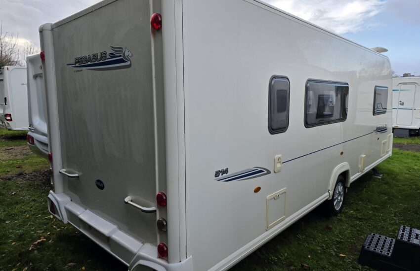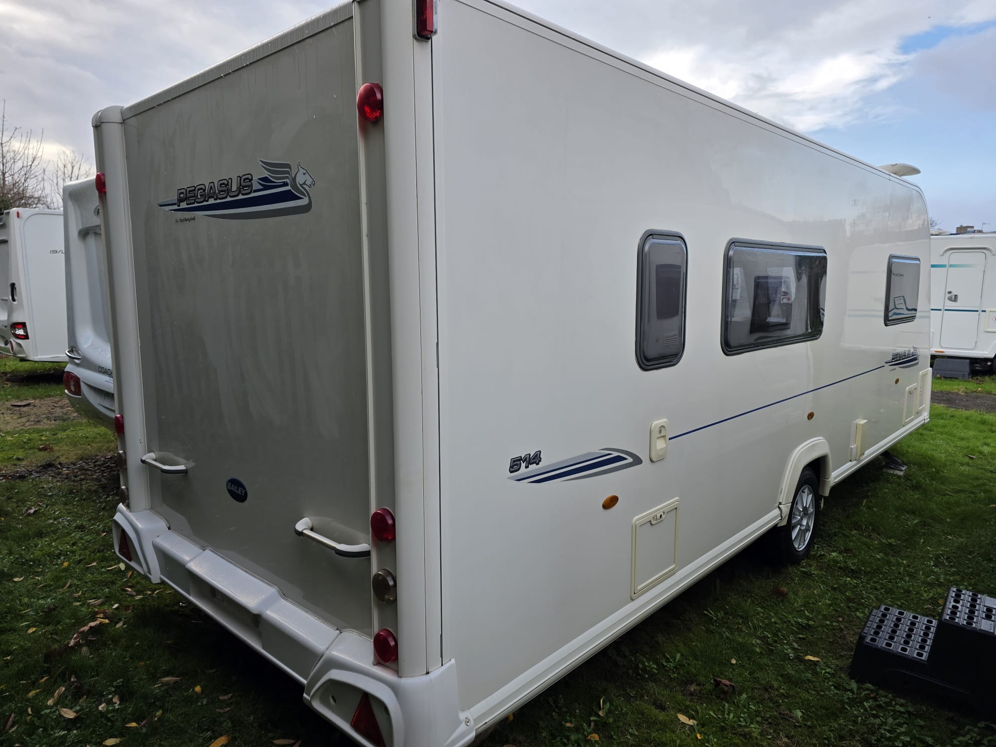 The 2010 Bailey Pegasus 514 is a fourth berth caravan featuring a front lounge that converts into a large double bed, central dinette that coverts to a bunk beds and a rear washroom with a separate shower, toilet and wardrobe. It is built on an Alu-Tech body shell and includes a range of modern amenities like a Truma duel-fuel heating and hot water system, a full oven, grill, microwave, 3-way fridge, and Al-Ko ATC stability control.