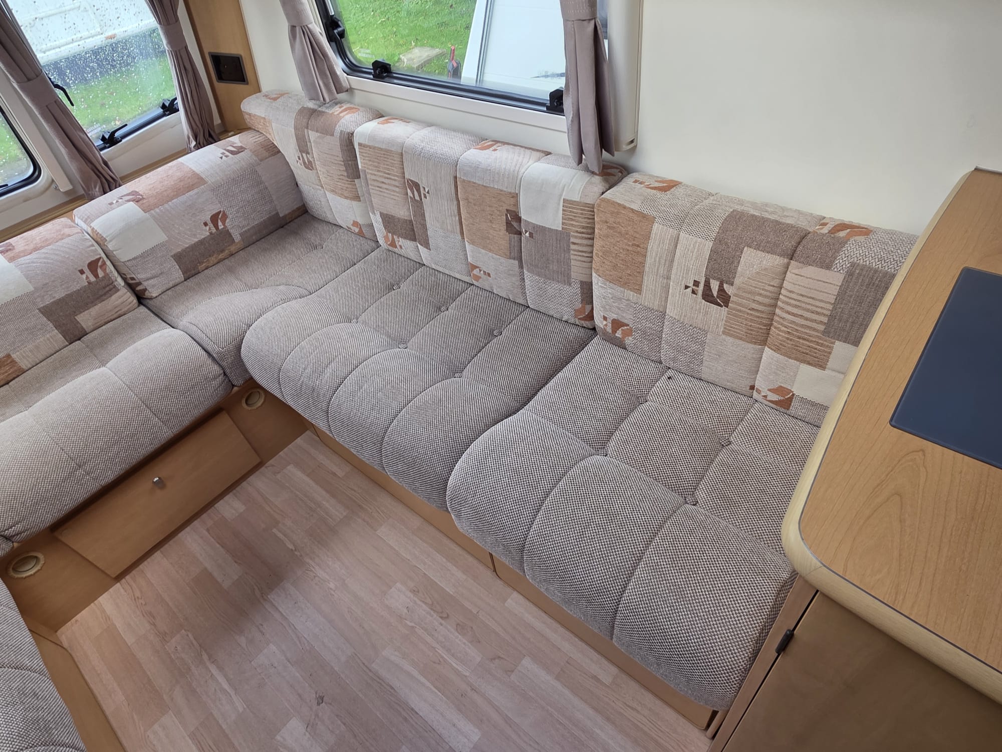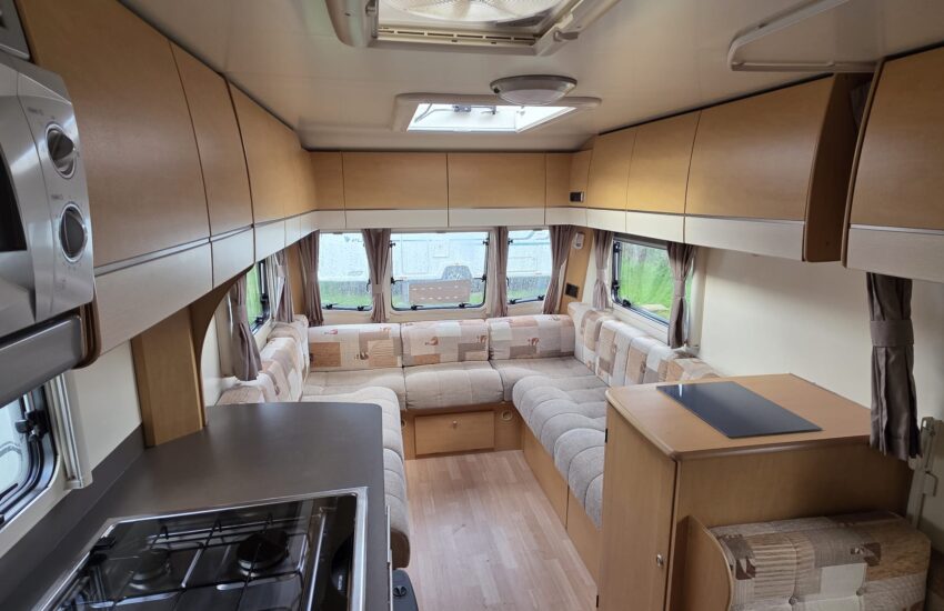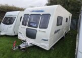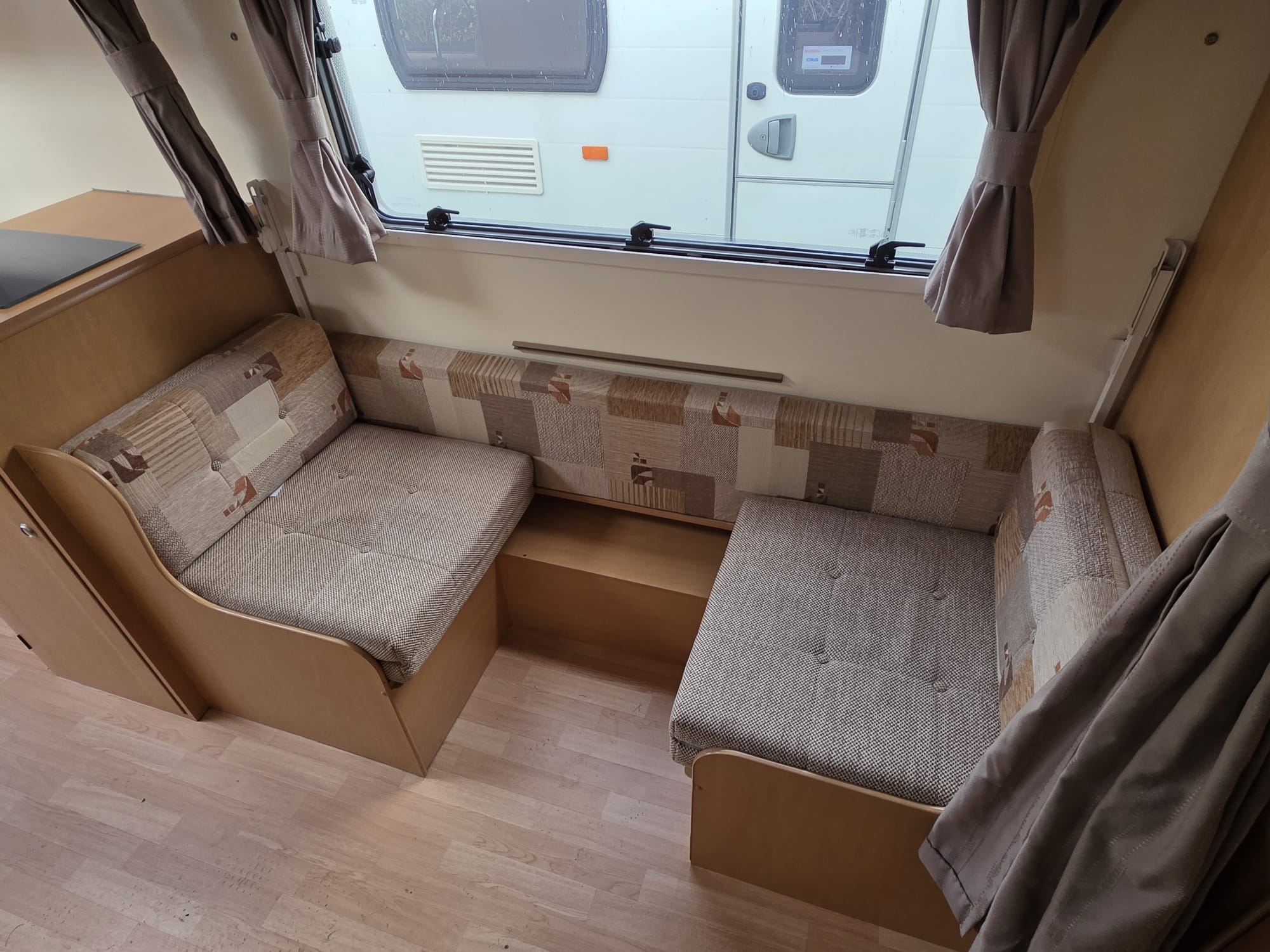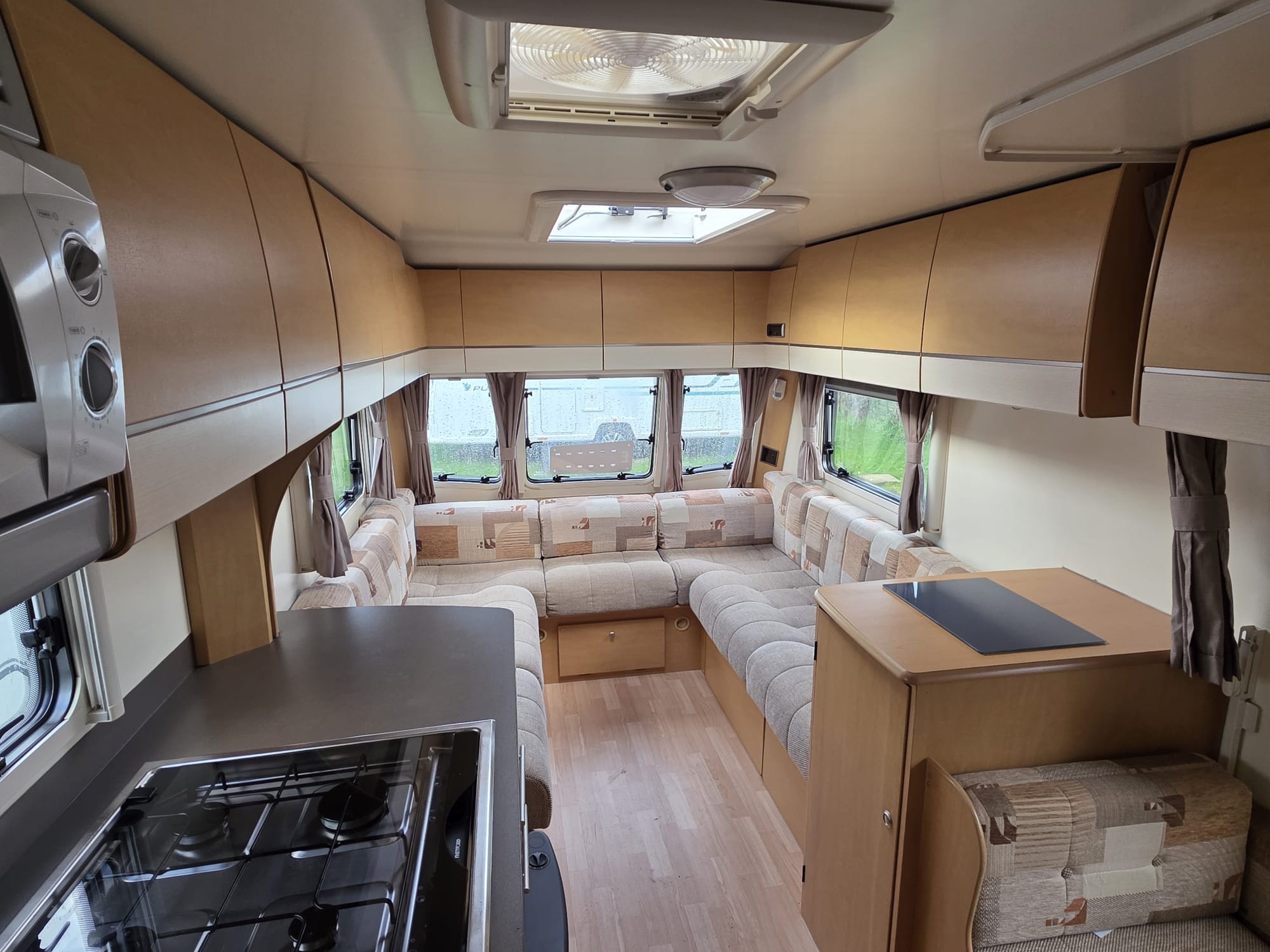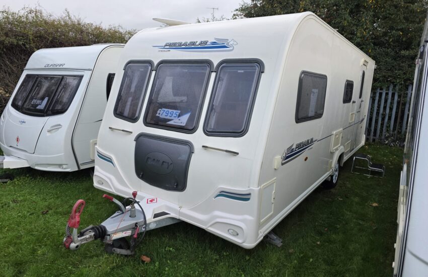 The 2010 Bailey Pegasus 514 is a fourth berth caravan featuring a front lounge that converts into a large double bed, central dinette that coverts to a bunk beds and a rear washroom with a separate shower, toilet and wardrobe. It is built on an Alu-Tech body shell and includes a range of modern amenities like a Truma duel-fuel heating and hot water system, a full oven, grill, microwave, 3-way fridge, and Al-Ko ATC stability control.