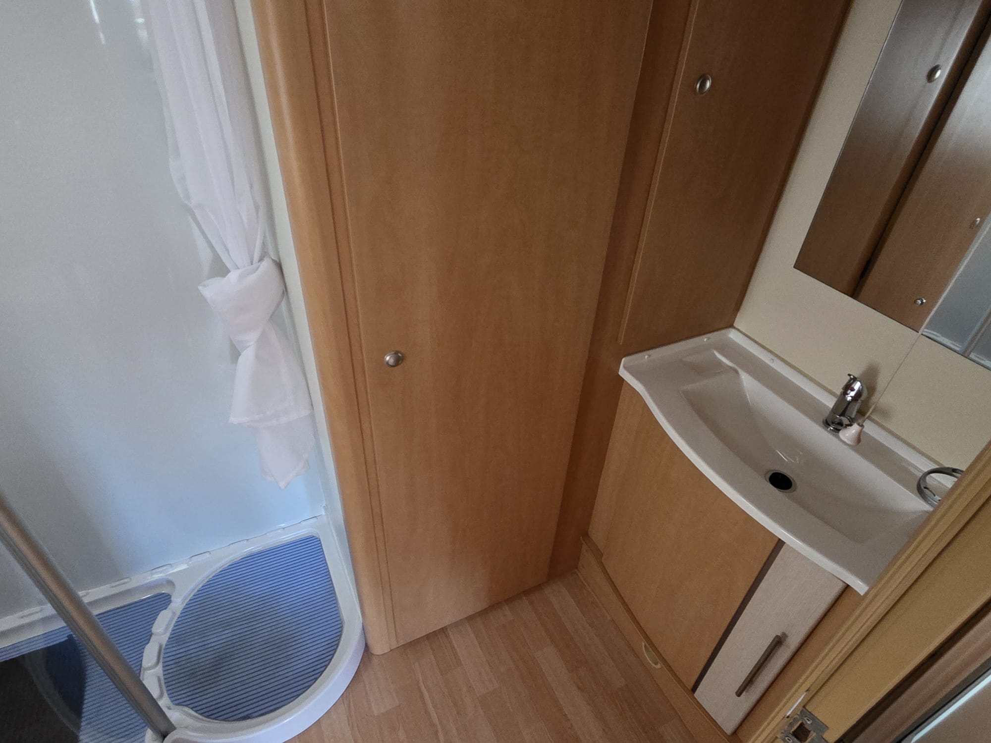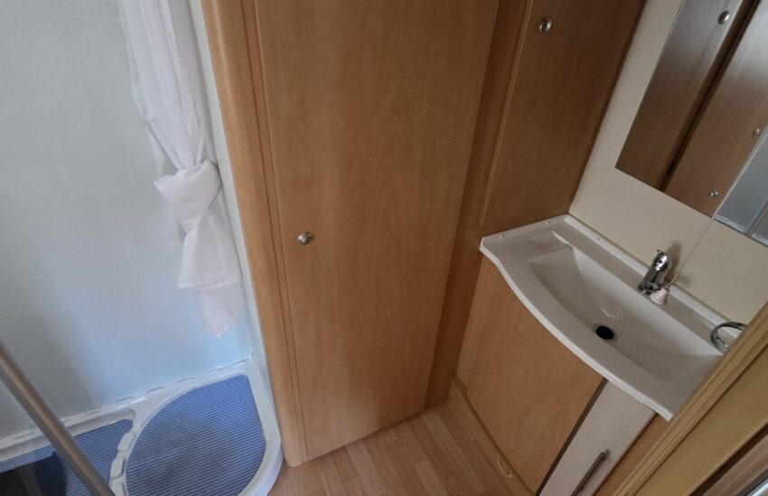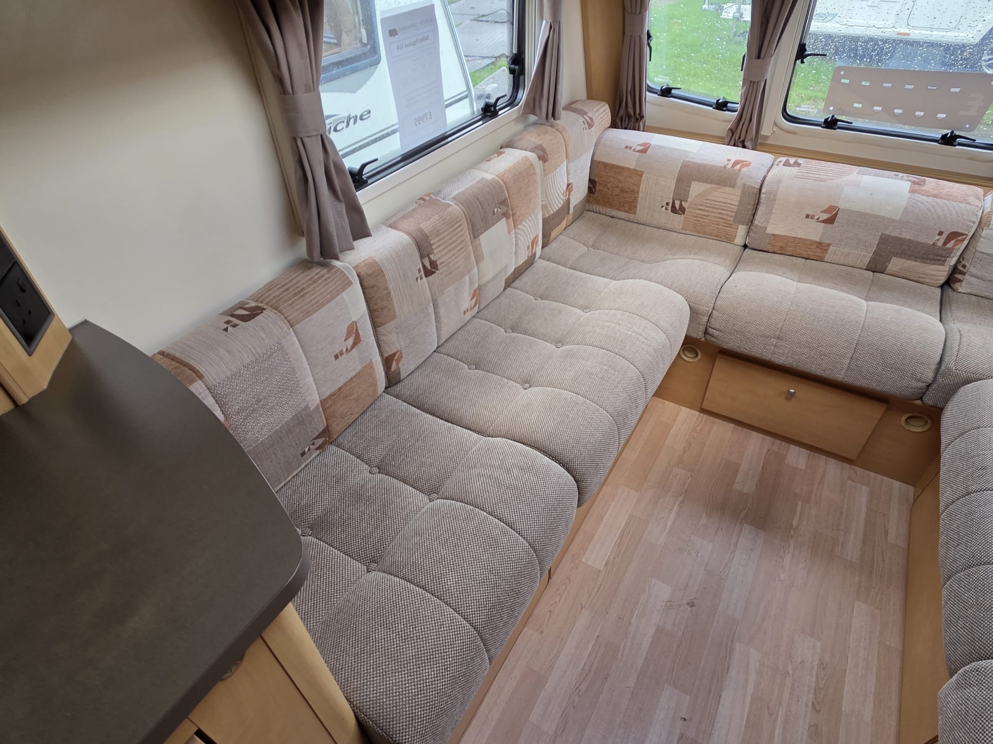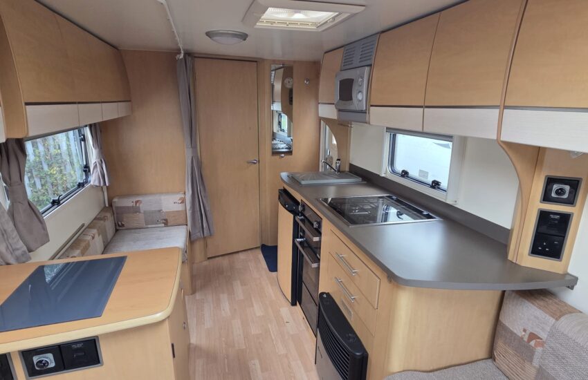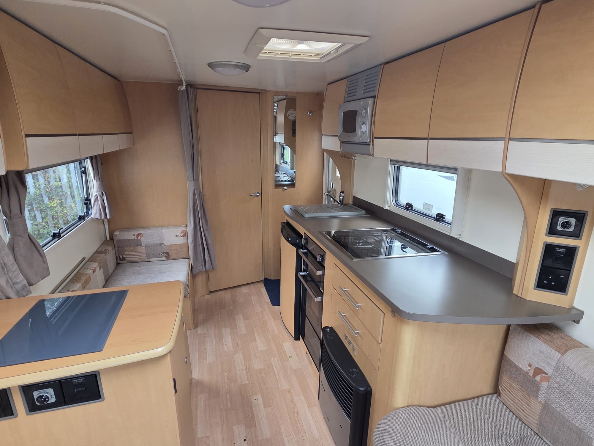 The 2010 Bailey Pegasus 514 is a fourth berth caravan featuring a front lounge that converts into a large double bed, central dinette that coverts to a bunk beds and a rear washroom with a separate shower, toilet and wardrobe. It is built on an Alu-Tech body shell and includes a range of modern amenities like a Truma duel-fuel heating and hot water system, a full oven, grill, microwave, 3-way fridge, and Al-Ko ATC stability control.