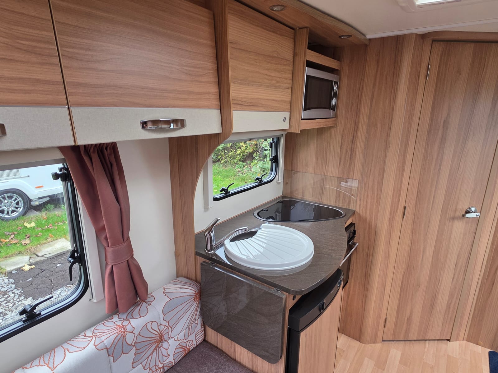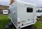This Bailey Pursuit 400/2 2014 is a super-lightweight two berth caravan with full rear washroom. Maximum weight is 1090, total length is 5.4, all in excellent condition. Motor mover included.
