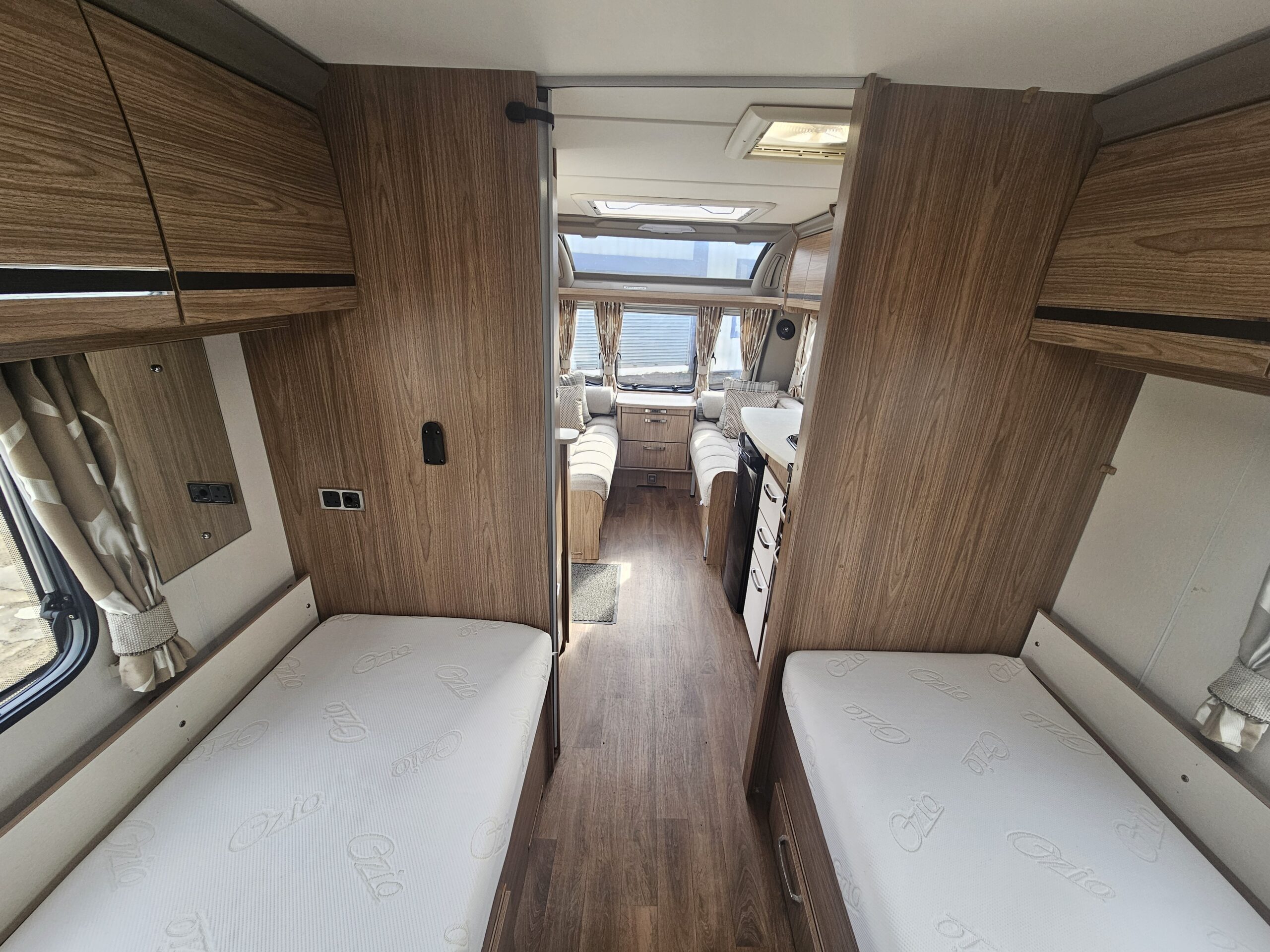 The Coachman VIP 565 (2016) is a 4-berth, single-axle touring caravan designed for family or couple use, offering fixed beds and a good level of comfort and specification for UK caravanning. A luxury caravan with 2 fitted single beds all in lovely condition.