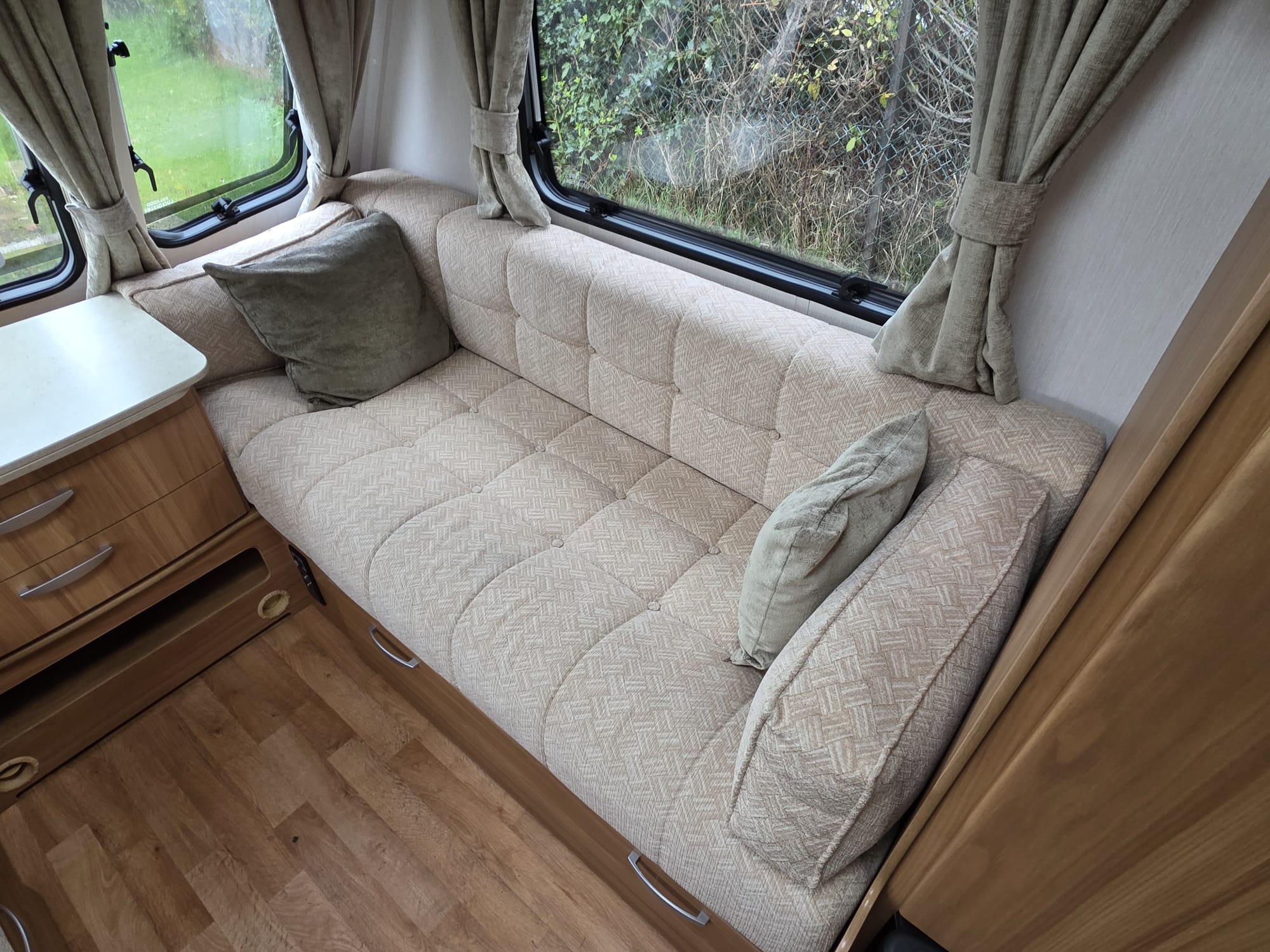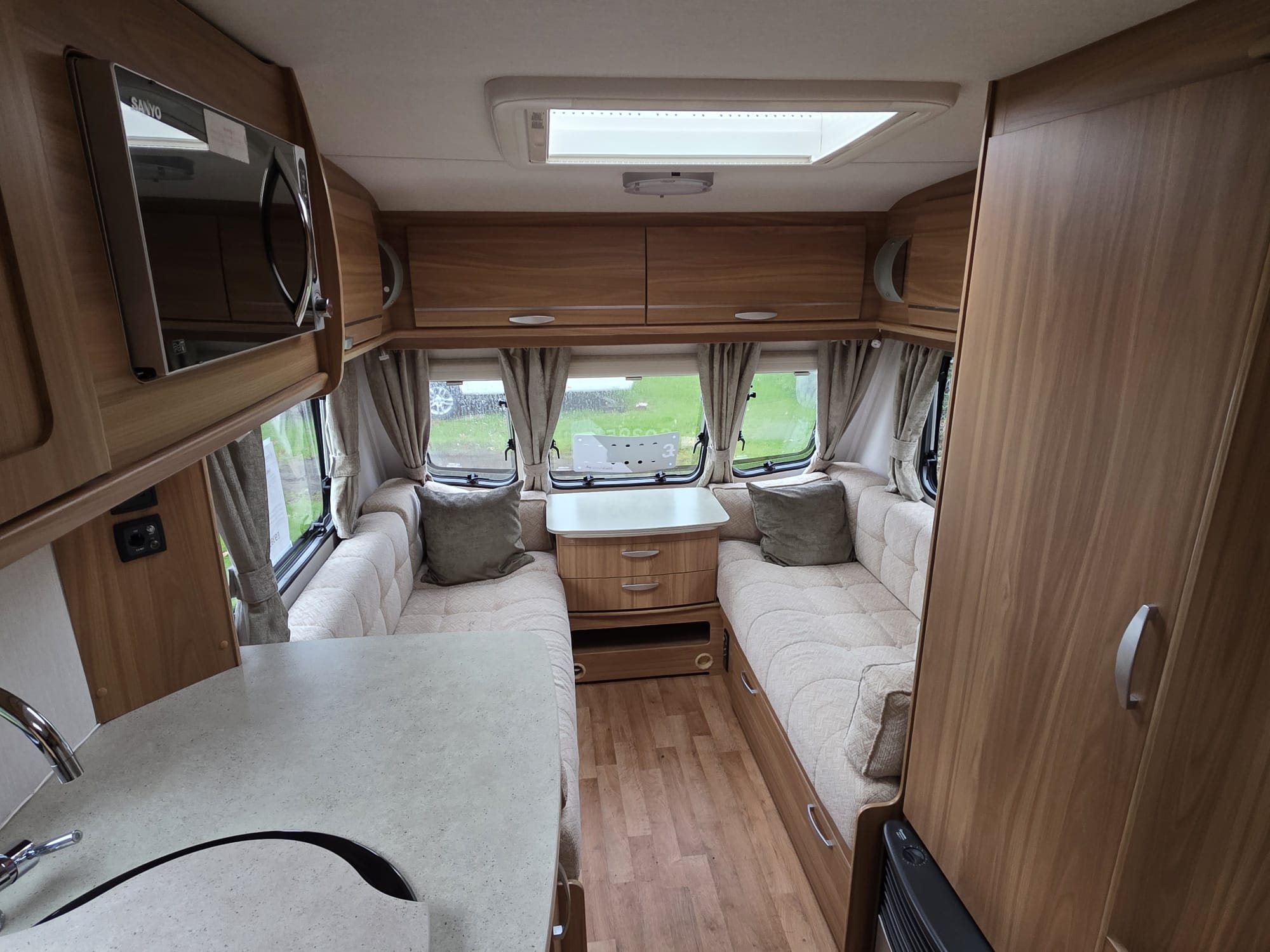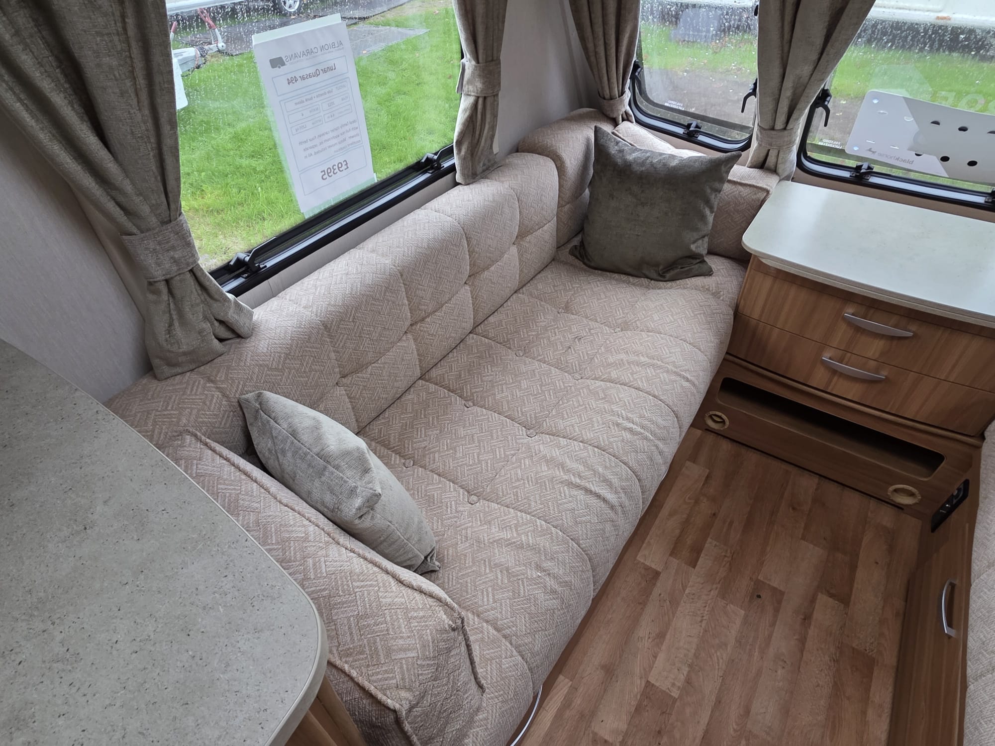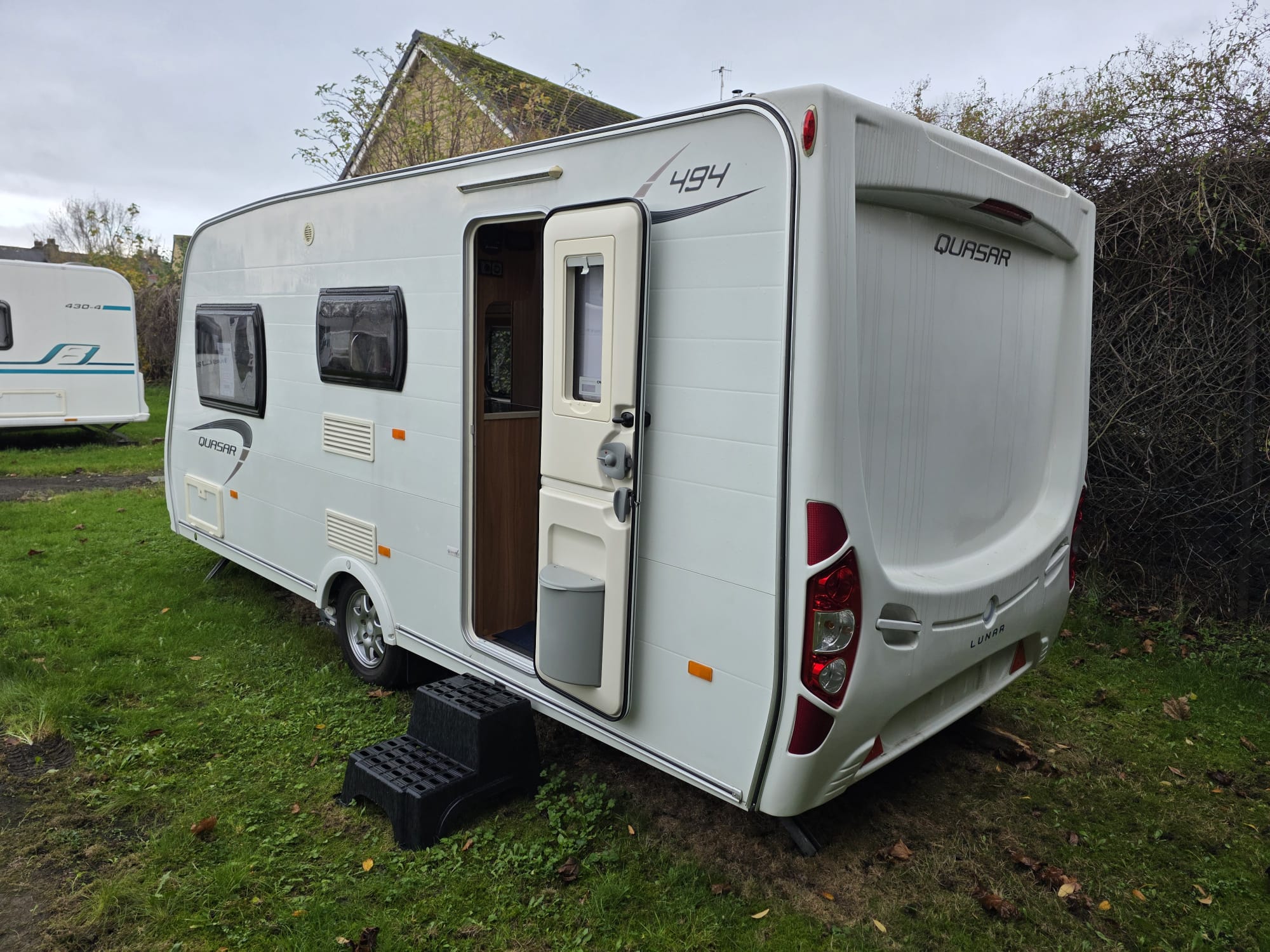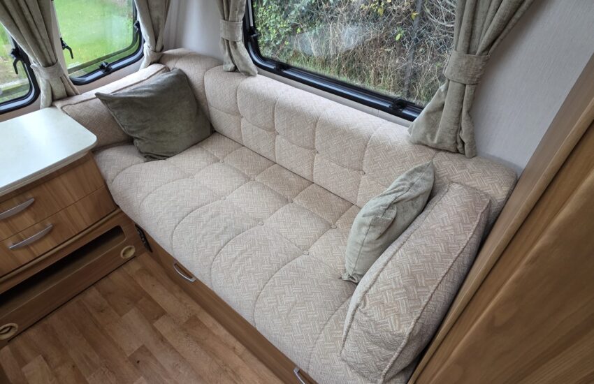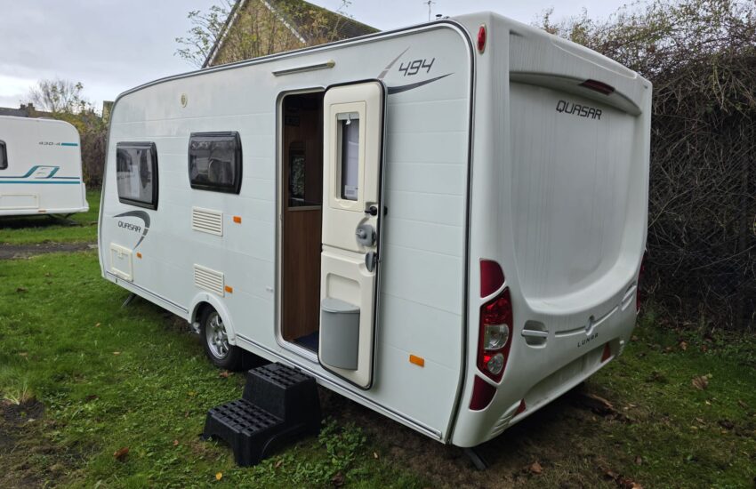 The Lunar Quasar 494 2012 was a 4 berth touring caravan with a side dinette that could convert into bunk beds, a front living area and a rear washroom with separate shower. It was known for being relatively lightweight and compact for its layout, offering features like a microwave, oven, and motor mover, making it suitable for both couples and small families.