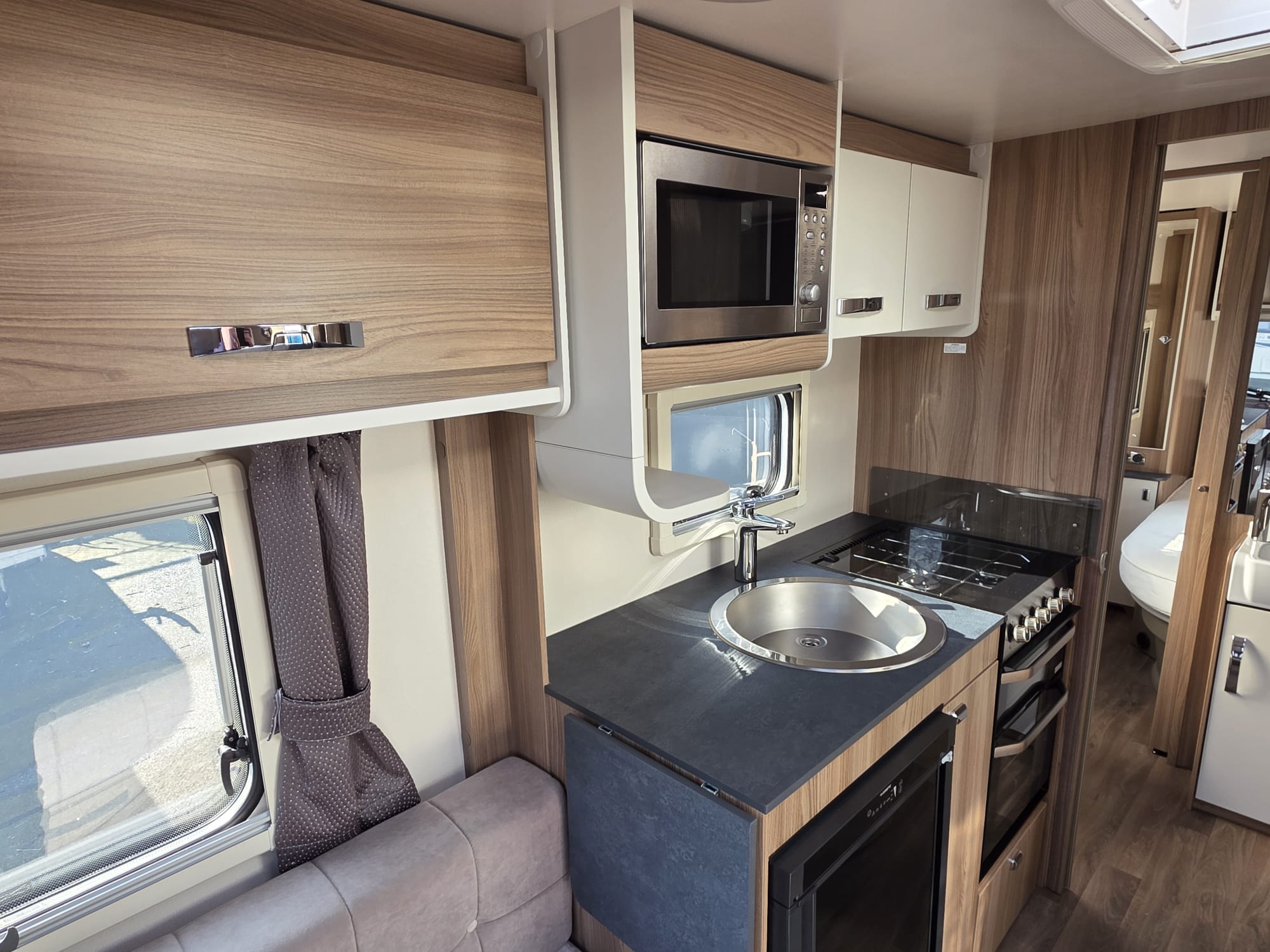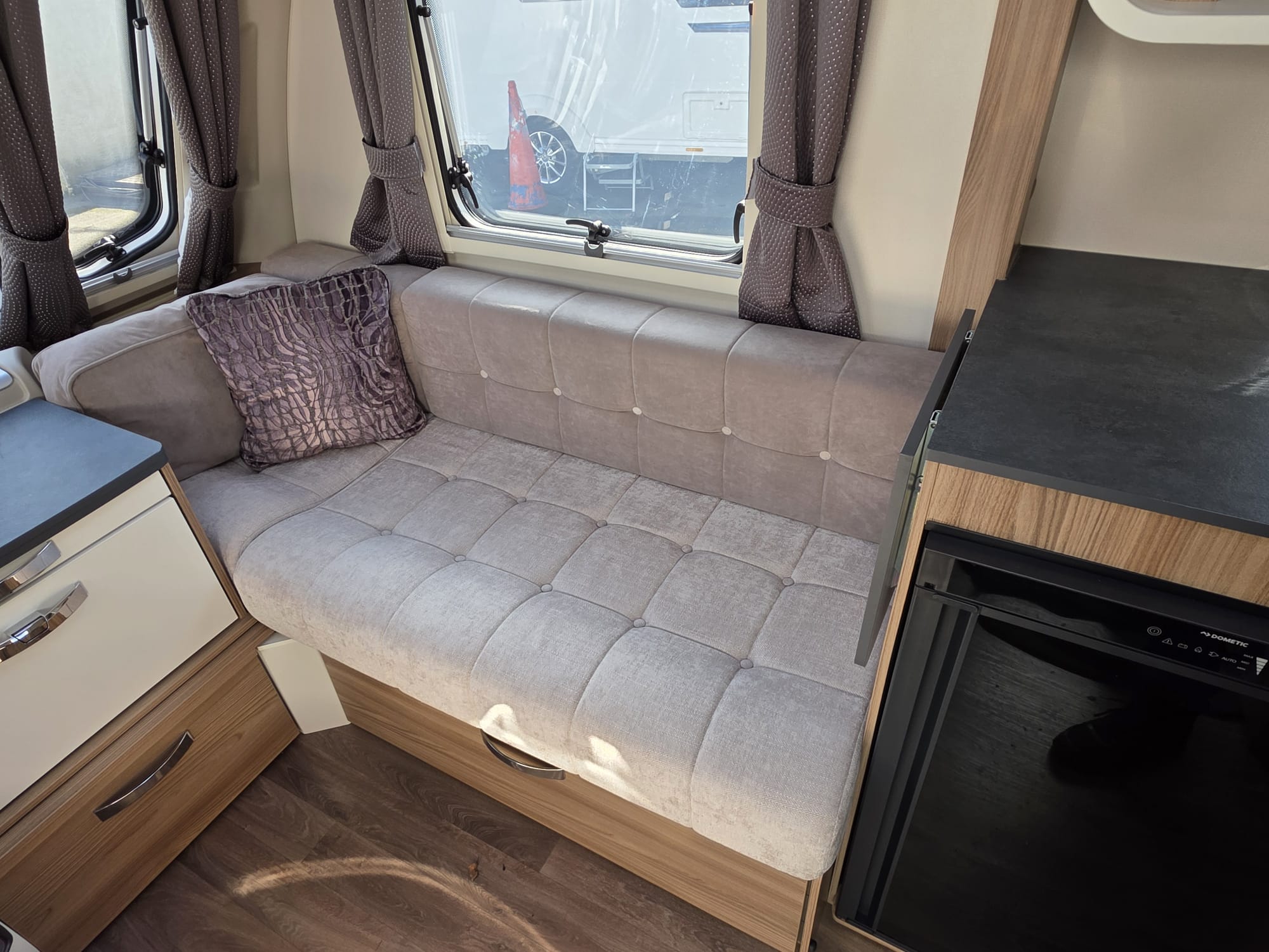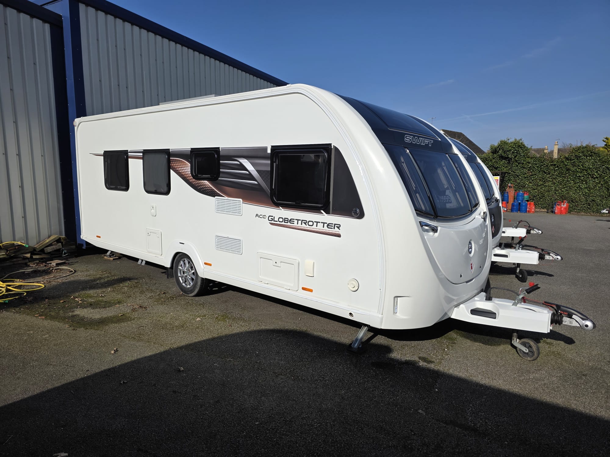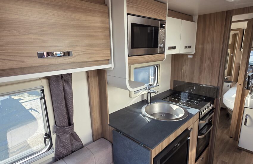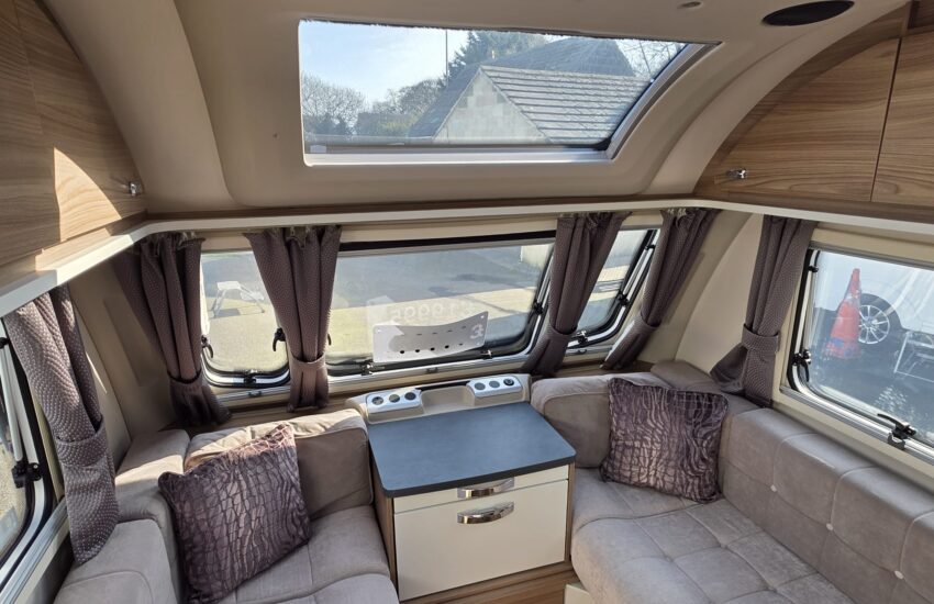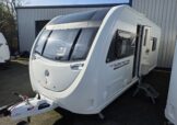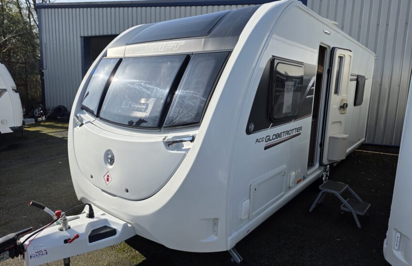 The Swift Ace Globetrotter 2022 is a 4-berth touring caravan built by Swift Group. It’s a popular UK layout designed mainly for couples or small families, with a fixed island bed and centre washroom separating the living and sleeping areas. Front seating can be arranged as two singles or as a double. Excellent condition.