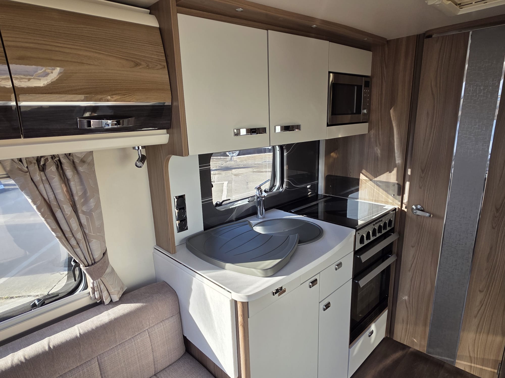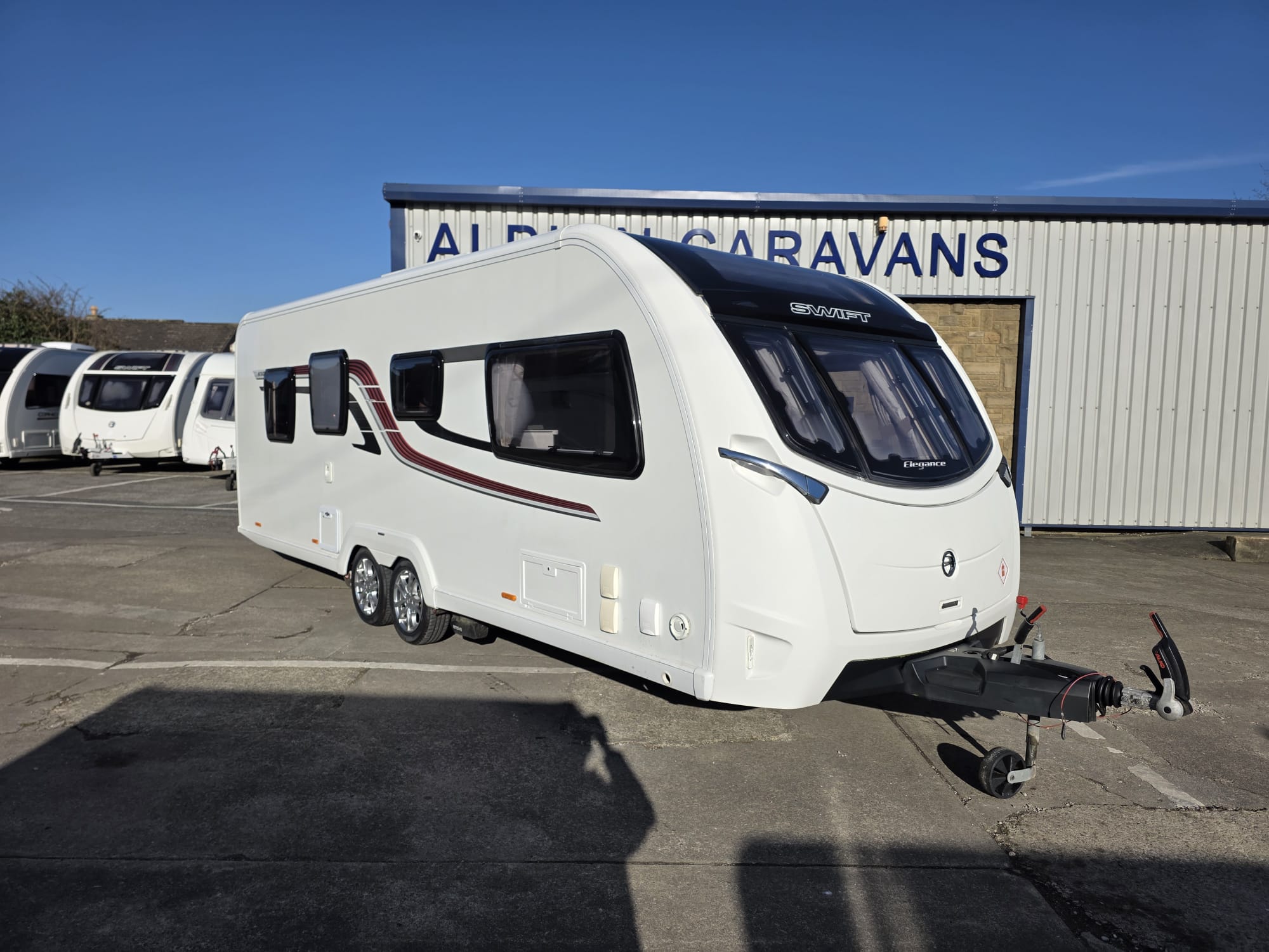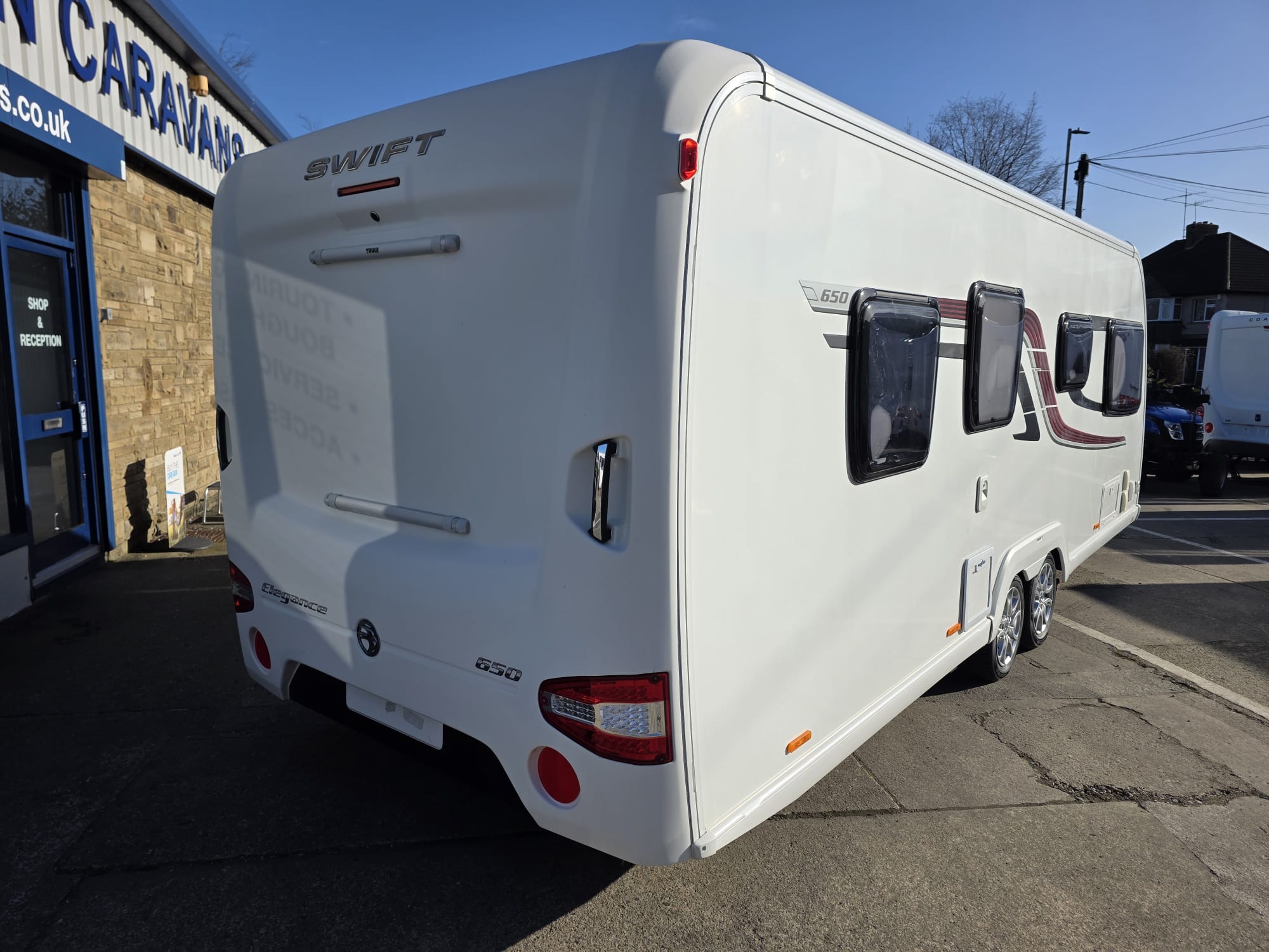 The Swift Elegance 650 2017 is a luxury twin-axle touring caravan from Swift’s flagship Elegance range. It’s designed as a high-spec “home-from-home” caravan with a fixed island bed and central washroom.