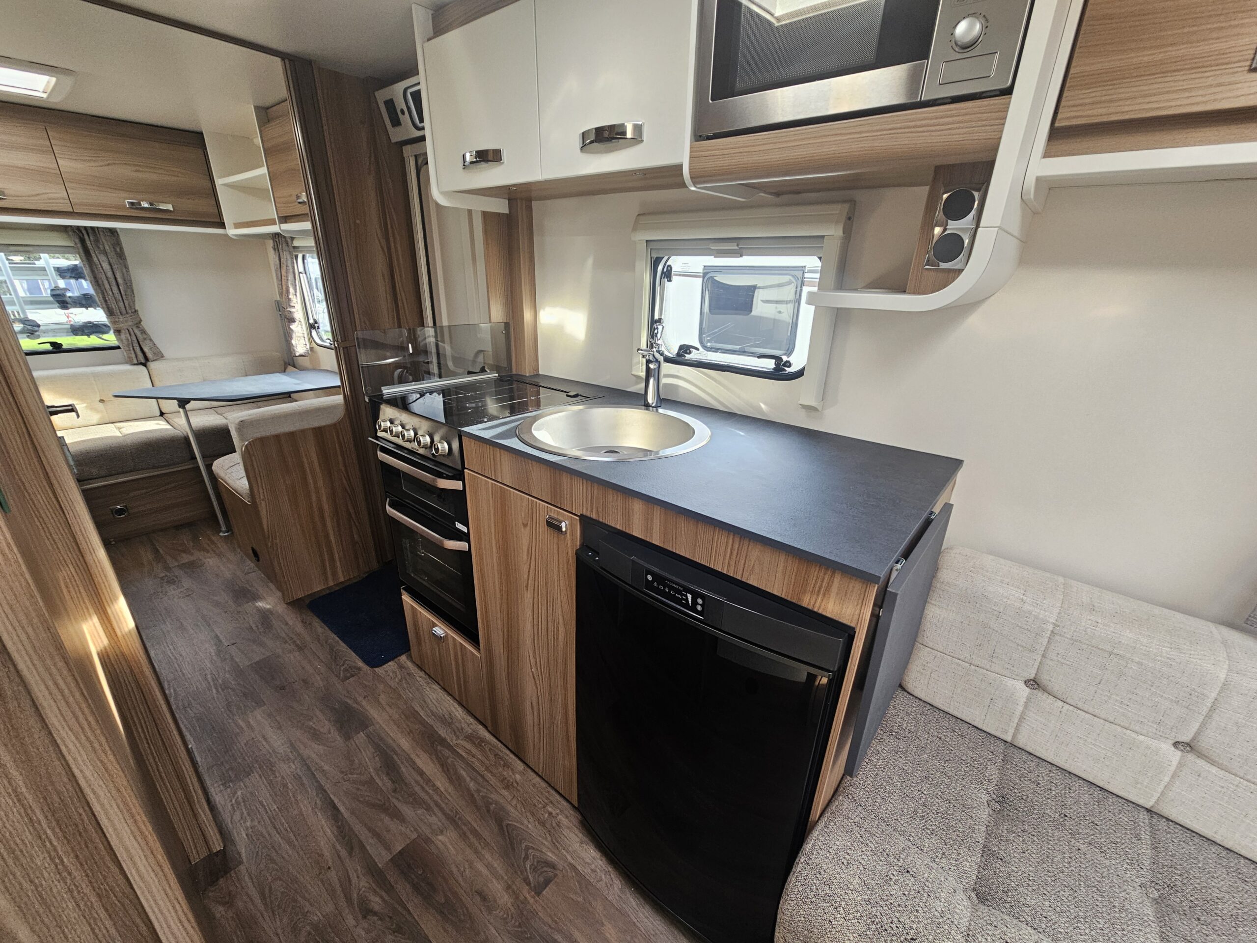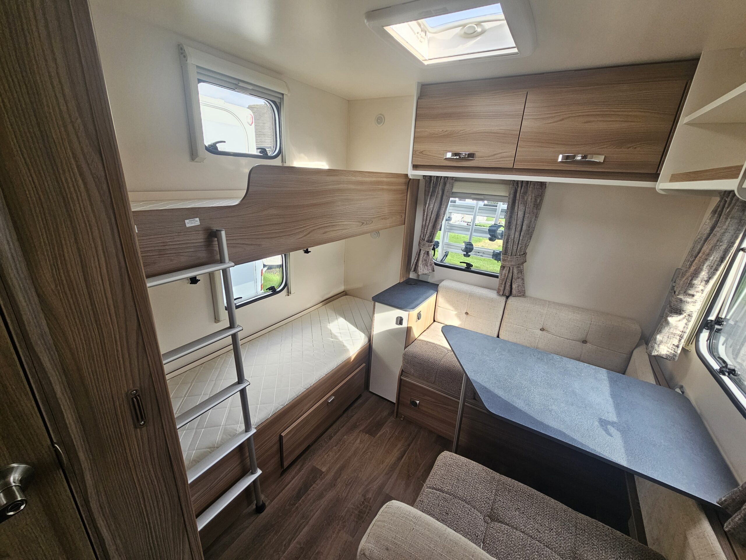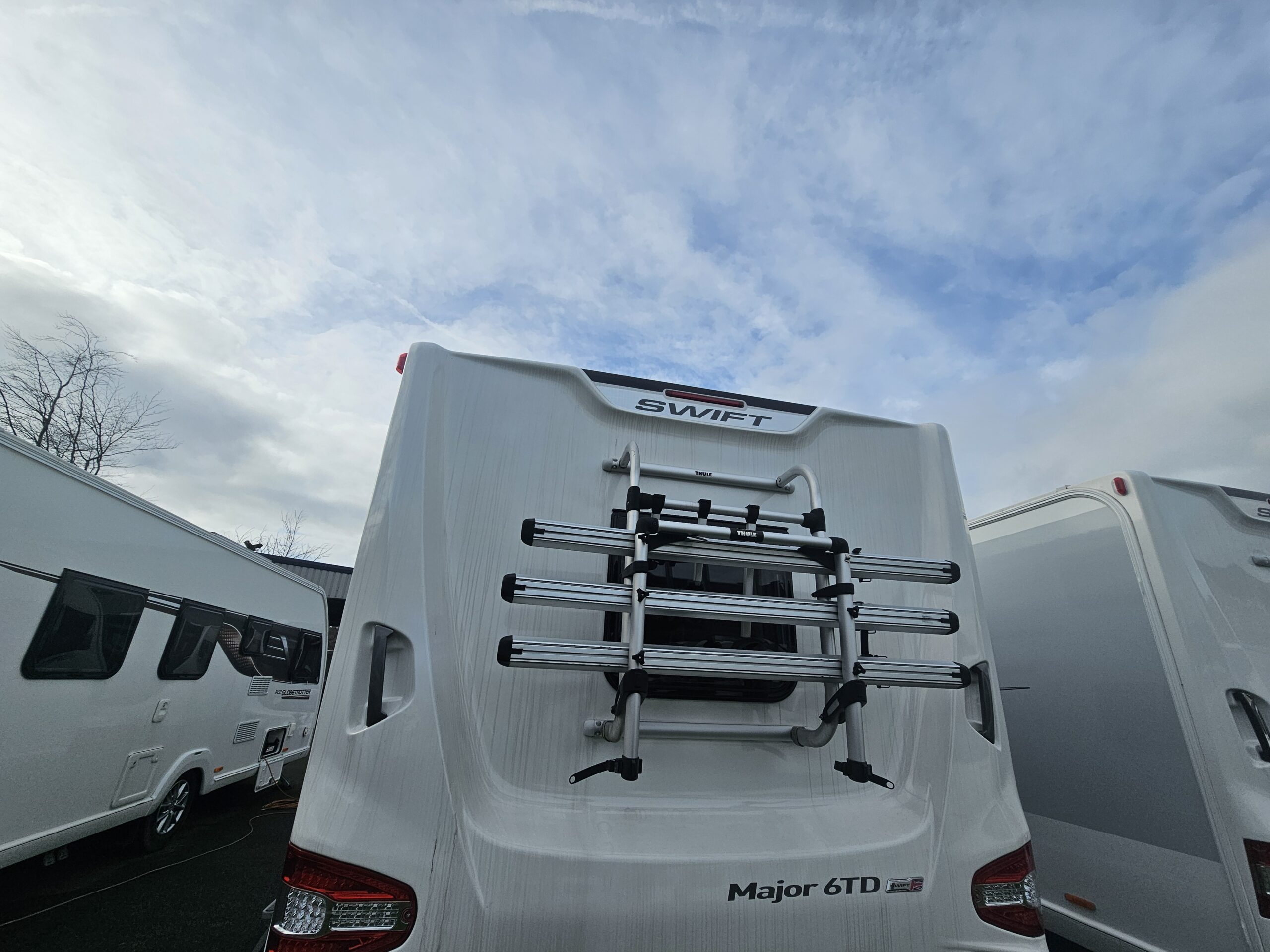 The Swift Sprite Major 6TD 2021 is a well-equipped, family-oriented caravan offering comfortable sleeping for six, practical living space with a rear bunk layout, and a decent spec of kitchen and bathroom facilities. It’s designed to be relatively light to tow and suitable for both short breaks and longer trips. A popular family-friendly caravan from Swift with a 6-berth layout fitted with bike rack fitted. Powrtouch Evolution motor mover included.